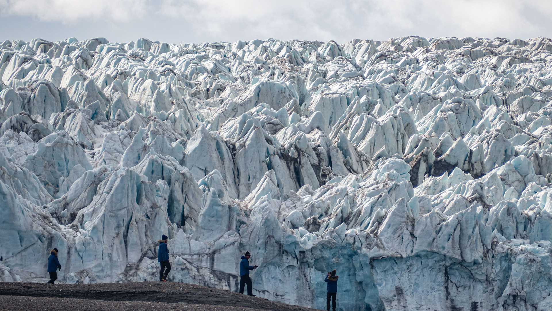 The final day of an expedition is always filled with excitement and anticipation. After an amazing journey all around Svalbard, we were eager to see what we might be able to experience today to round out such a fantastic trip. With some wonderful weather to greet us into the calm waters of the large fjord of western Spitsbergen, Bellsund, we headed out after breakfast from National Geographic Endurance. Our last outing in Svalbard certainly did not disappoint! Not everyone can say they’ve walked along the terminal moraine of a tidewater glacier. On shore, we were treated to stunning views of the large glacier, Recherchebreen, and the surrounding expanse of the fjord. As an extra treat, we took the scenic route back to the ship by way of an impromptu Zodiac cruise, visiting a small haulout of walrus and exploring the glacial lagoon, which offered the chance for a closer view of the glacier face and an appreciation of the sculptures of ice it leaves behind.