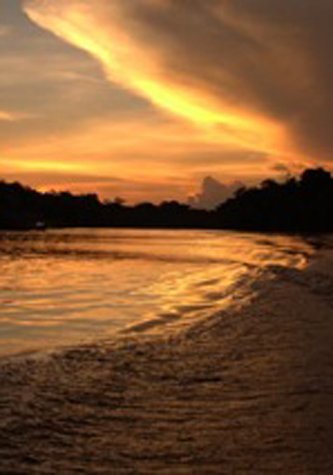 After a superb sunset, we started making our way back in total darkness in order to see one of the highlights of the Amazon: spectacled caimans. The first one was found very close to the shoreline, and did not move at all as soon as we approached it. It stayed motionless the whole time we were close making it a perfect photo op. At the end of exploration, we had the gratification of having one of the most splendid moments of the week that the Amazon could ever offer us by seeing several spectacled caimans along the riverside.