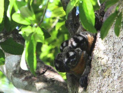 After breakfast we went out once again to explore Belluda Caño by skiff. Birds and sloths were in the treetops, and we found some new monkeys species for our list as well, my favorite ones so far: night owl monkeys. With their huge nocturnal eyes they checked on us from a hole in a tree. They looked as curious about us as we were of them.