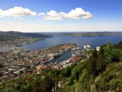 In 1909 the railroad between Bergen and Oslo was inaugurated, but with the high mountains separating Bergen from the rest of Norway, even today it really lives its own life. Bergen is also climate-wise very different from most of inland Norway, with a Gulf Stream sweeping just outside, which gives very mild winters but also cool summers. Significant for the Bergen area in early June are the rhododendrons, now in full bloom. Nowhere else in Scandinavia are they found as high, lush and rich as in Bergen.