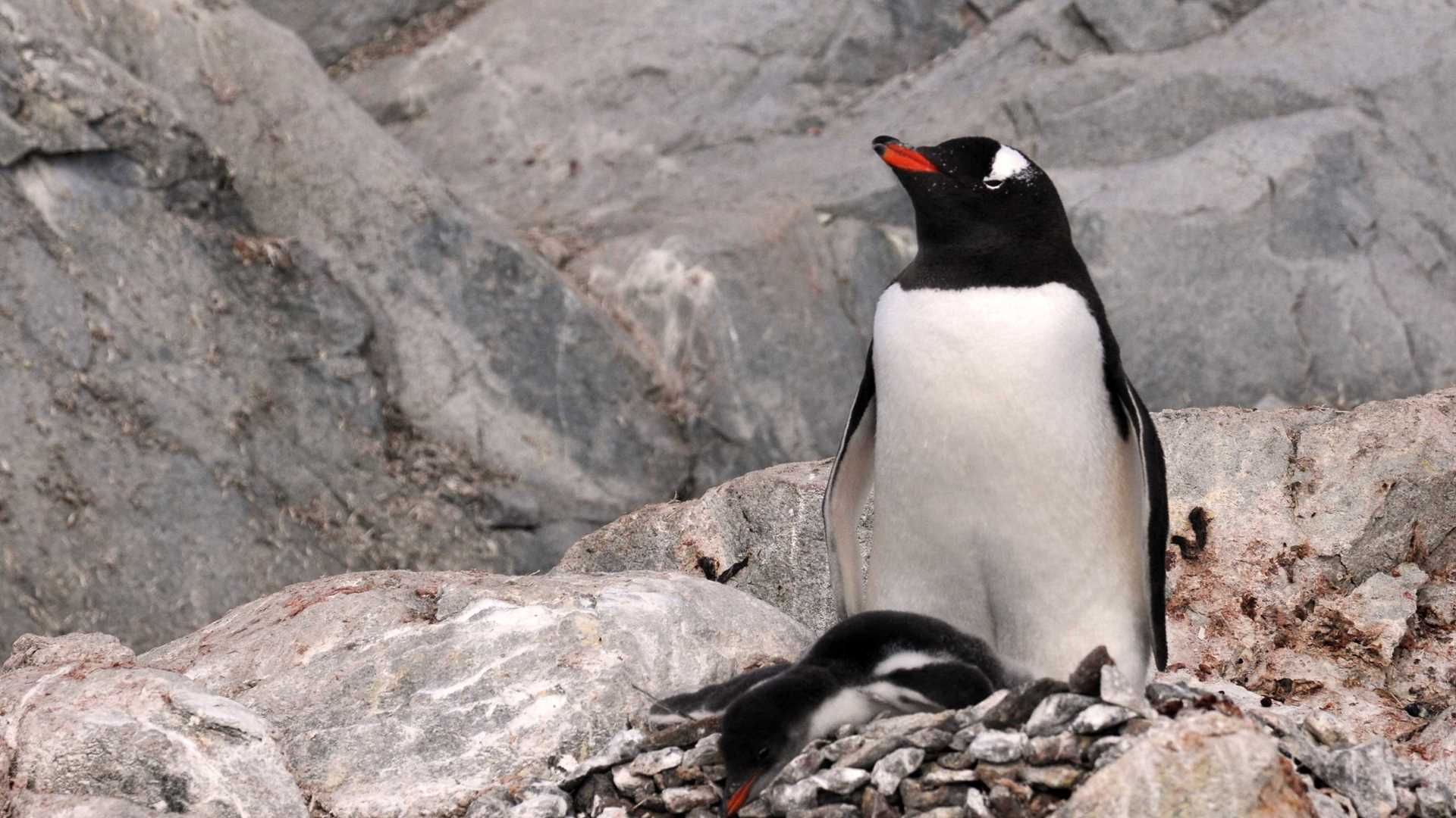 The afternoon’s grand-scale backdrop had a similar effect. Gentoos, Adélies, and blue-eyed shags provided a Jurassic Park-like soundscape for our excursion at Petermann Island. Icebergs rolled in the distance, sometimes making large exploding sounds that commanded our attention, and other times simply bobbing slowly to the swell of the sea. Today’s seascape and soundscape inspired awe in every way.
