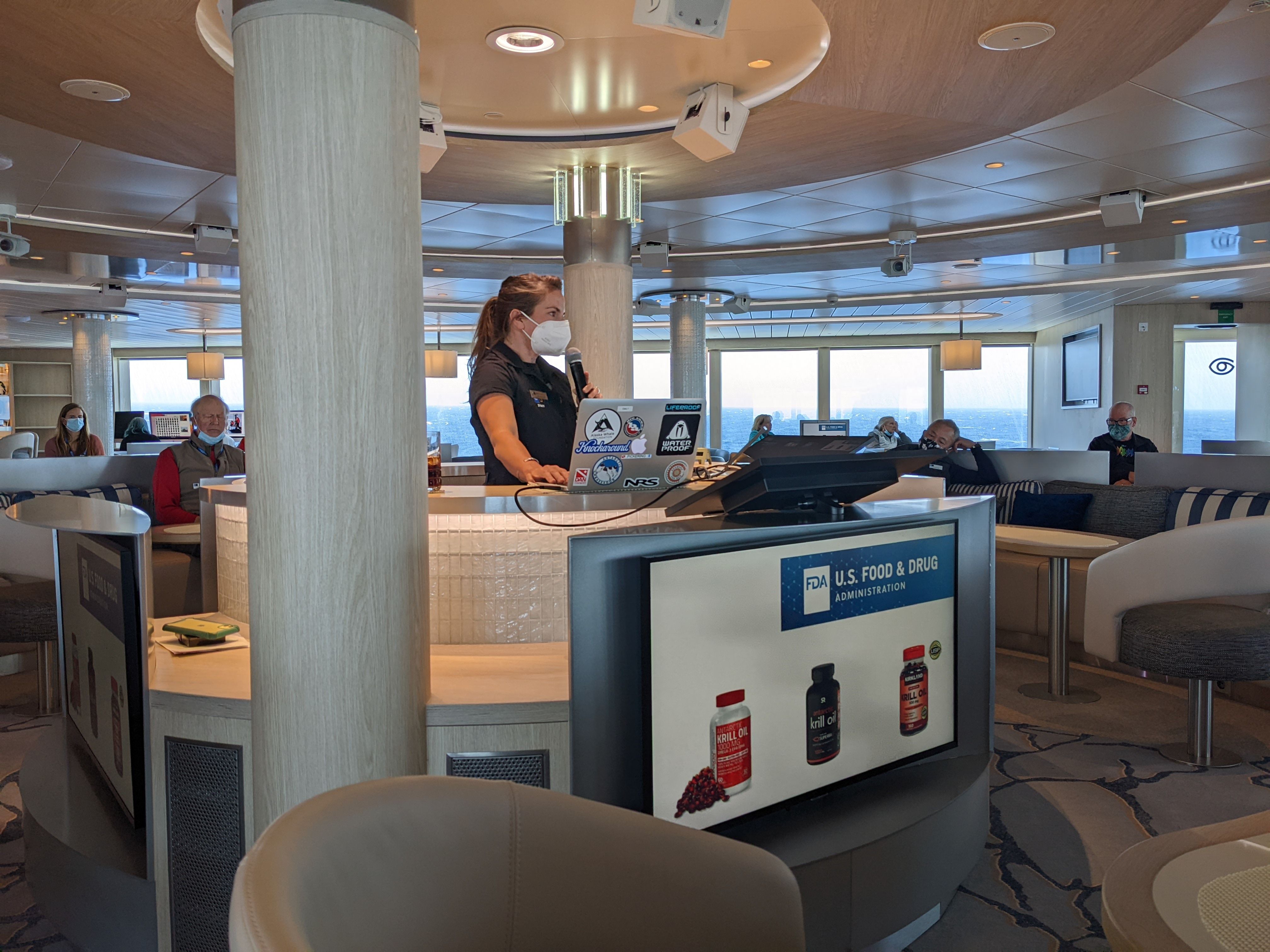 The afternoon was filled with explanations from the assistant expedition leaders Alex and Emily as to the procedures to expect on parting from the ship in Ushuaia. Many concerned minds were put to rest by the detailed and comprehensive plan for the departure day that the Lindblad team had concocted. A couple of presentations followed lunch giving us even more insight into the Great White Continent. Kayvon delved into the world of “Antarctic Oceanography,” and later Jess discussed “Living and Working on Sea-Ice” and the harsh realities of scientific research in Antarctica.