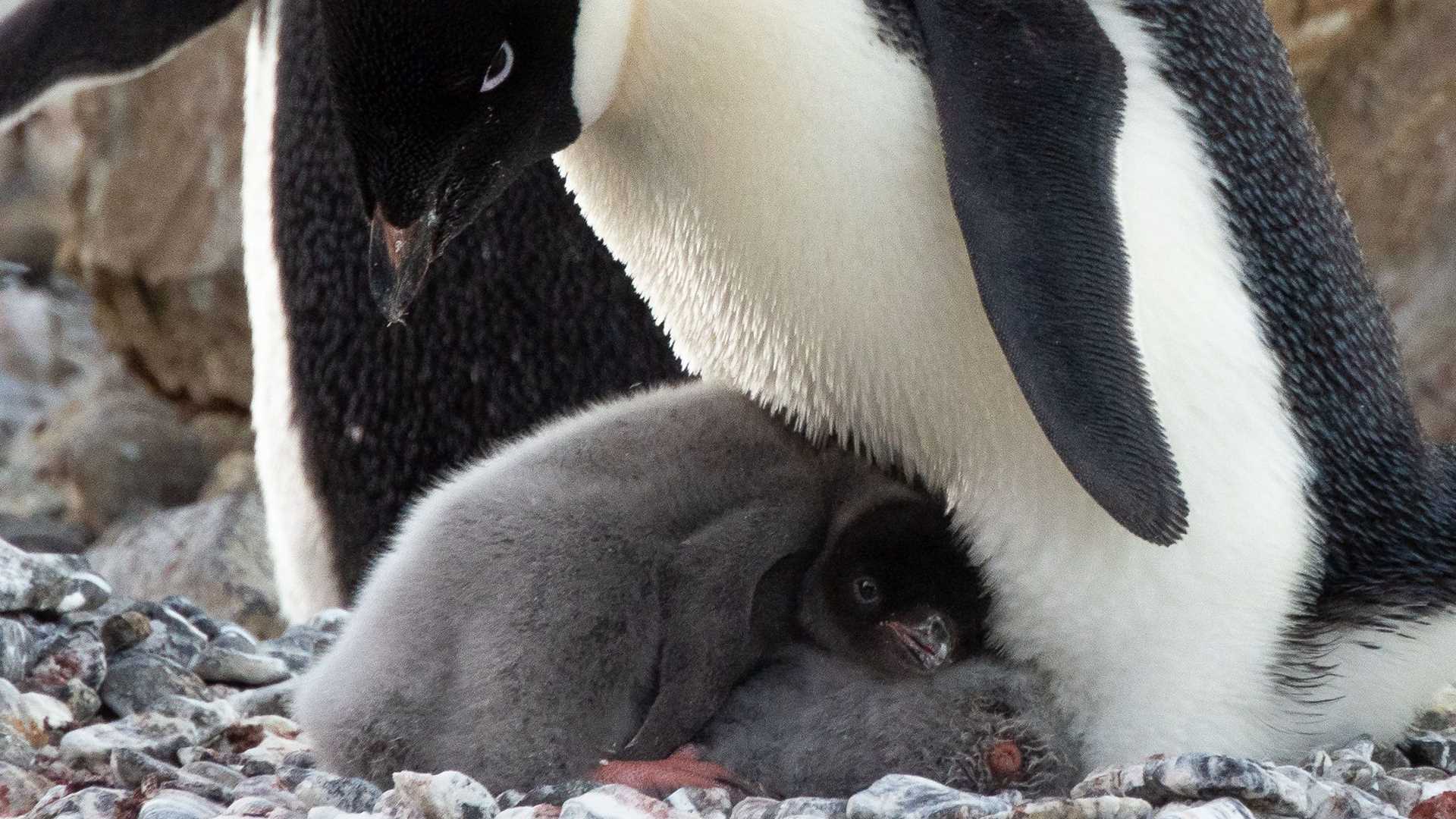 What a day! Brown Bluff is an extraordinary place. As we cruised toward the shore, we noted black and white movement—small forms walking up hills and shooting out of the water onto land. Adelie penguins and their chicks! These penguins live along the coast of Antarctica, and they have distinctive white rings around their eyes. We also observed gentoo penguins with their chicks. Gentoos are stockier, distinguishable by the bold white band between their eyes and over their heads. Excitement filled us as the penguins wandered past to carry out their duties during an eventful austral summer in Antarctica.