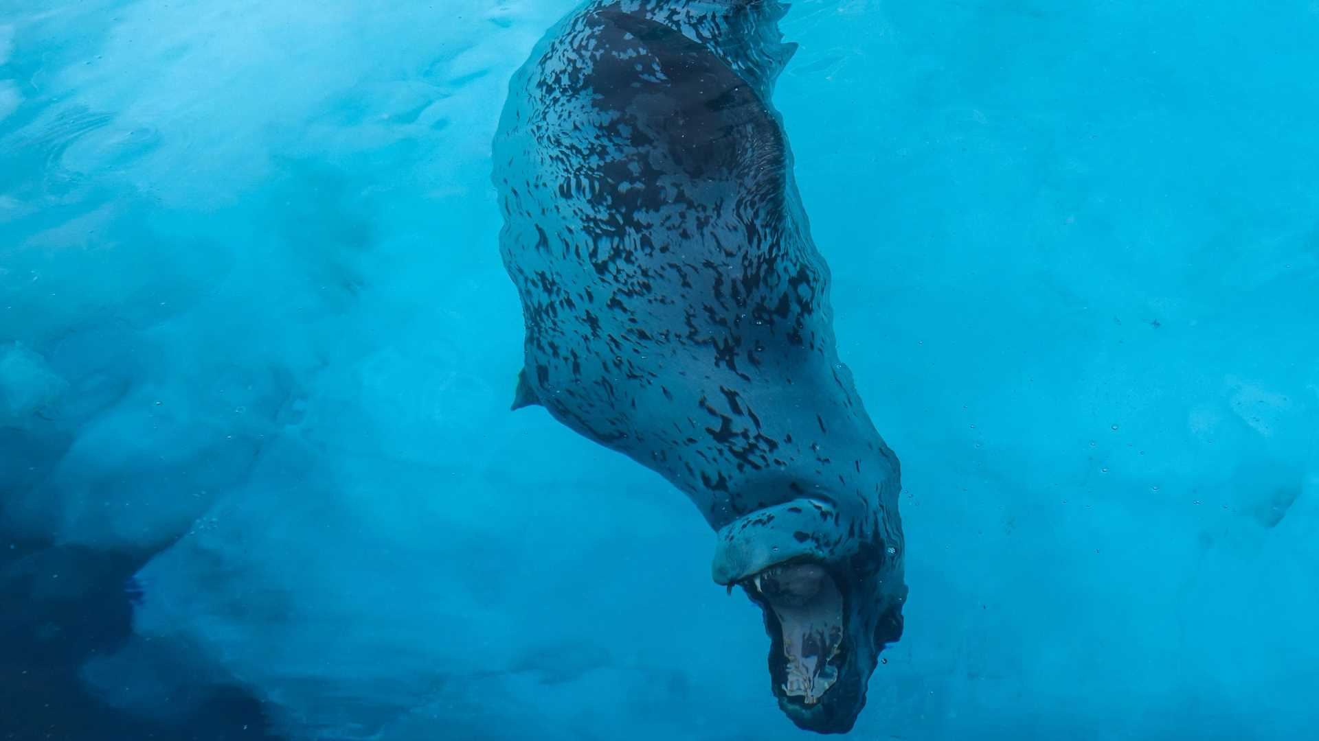 Our journey continued to Brown Bluff, a volcano nearly 2,300 feet high, which would be our second continental landing of the expedition. Dozens of leopard seals patrolled the area, and we had incredible encounters with them. One of our teams could even see them hunting a penguin. Female leopards can reach 1,000 pounds and are formidable hunters, propelling themselves underwater with both sets of flippers.