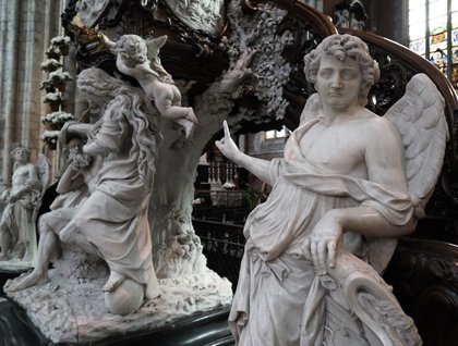 Today we were the happy recipients of their architectural choices as the city is one of the architectural gems of Western Europe. It is difficult to point to one building to praise since the city is so blessed. However, we all marveled at the glorious gothic city hall (Stadhuis) built in 1420, literally covered with statues of the rulers of Flanders and the small but polychrome Basilica of the Holy Blood. A good number of us actually got to see the holy relic. We all boarded the canal boats for a 30-minute ride through this “Venice of the North.” The name of the city actually means “bridge,” a testimony to the numerous canals in the city. Many enjoyed the delights of Belgian pancakes heaped with whipped cream and strawberries.