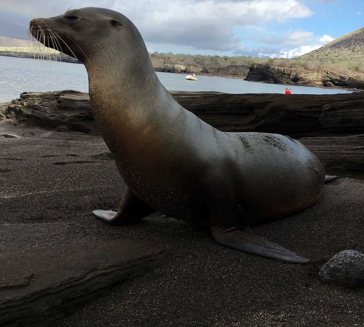 After lunch in the afternoon we arrived at Puerto Egas, where we offered snorkeling outings and a nature walk along the coast. As we disembarked, we had the chance to see one of the most important predators in the Galapagos Islands, a Galapagos hawk, flying above our heads. While we walked around, we observed amazing volcanic formations, known as the Grottos, and we enjoyed watching a small group of Galapagos fur seals resting on the lava flow. Our guests who chose to snorkel from the shore saw lots of tropical fish, sea lions, sea turtles, and sharks.
