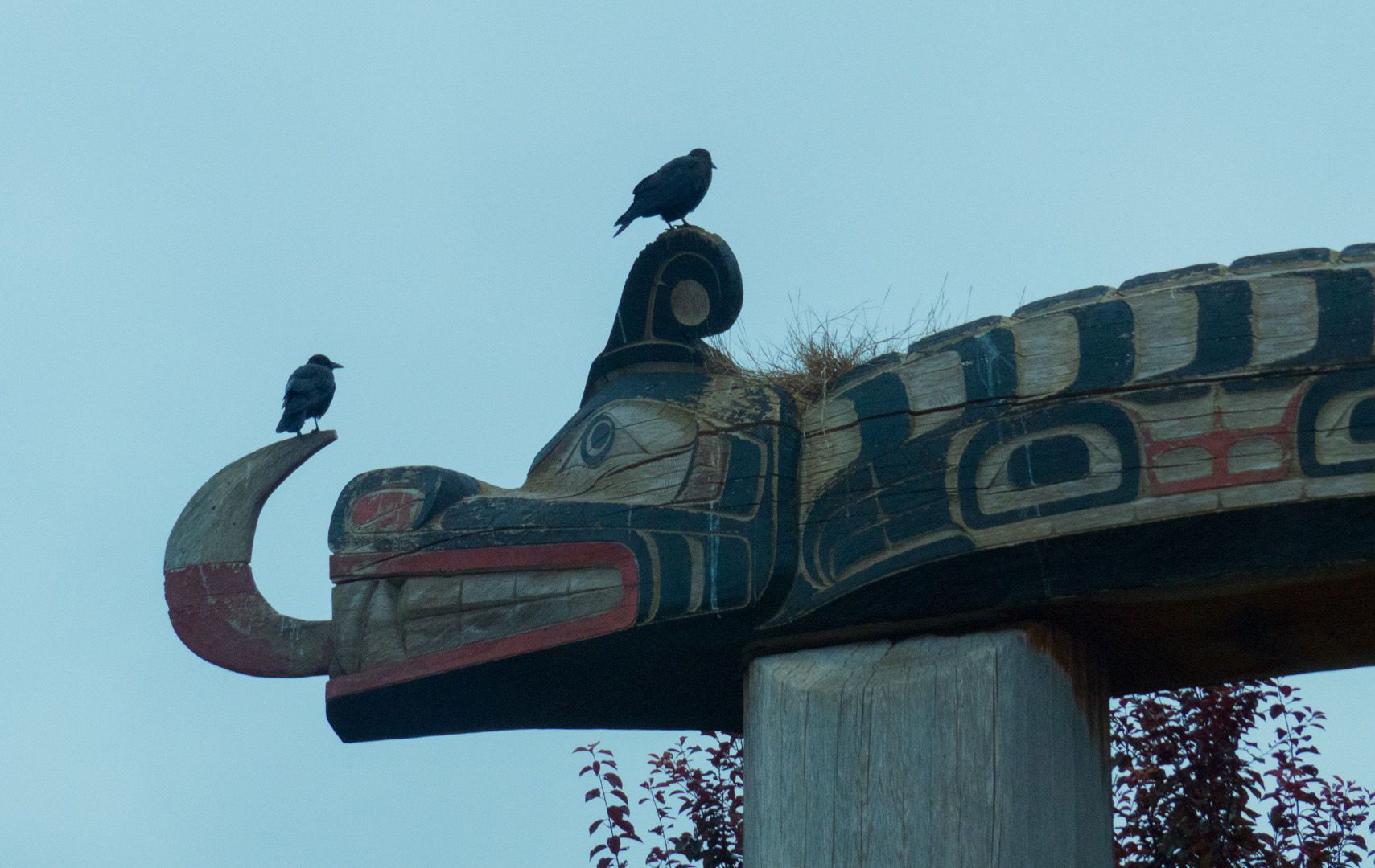 Calm waters and sunny tides welcomed National Geographic Sea Bird to Alert Bay. Eager to stretch our legs, we walked through the sleepy port town to the U’Mista Cultural Center for our interpretive tour of the impressive museum. Alert Bay is part of the traditional homelands of the Kwakwaka’wakw, which were once divided into seventeen different tribes throughout the region. During 1885-1951, potlatch was banned in Canada. Despite the outlaw, one was held in 1921, which resulted in a police raid and the aftermath of many participants facing fines or jail time. Additionally, over 600 regalia pieces were confiscated and distributed around the world. After the ban was lifted, the Kwakwaka’wakw people fought to bring their sacred items home, resulting in the U’Mista Cultural Center. Visiting the impressive collection and learning about this complex history was truly an eye-opening and unique privilege.