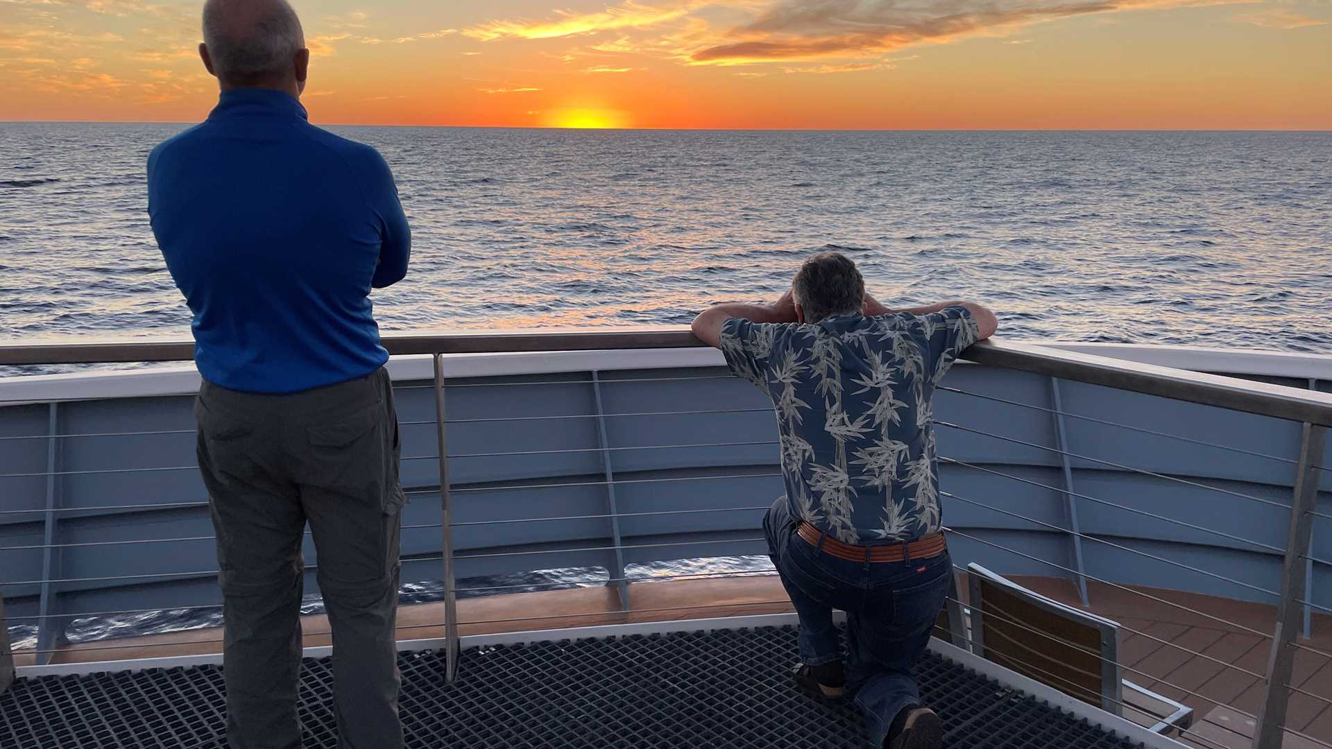 After an eventful morning and a delicious lunch, everyone took advantage of the gorgeous day to watch for whales and dolphins. Naturalist Berit, who specializes in whales, gave a talk about the humpbacks we have seen and the gray whales we hope to see in the next couple of days. Quite a few of us were eager to see the green flash again at sunset as we sailed toward the Pacific side of the Baja Peninsula. There we will find the gray whale lagoons.