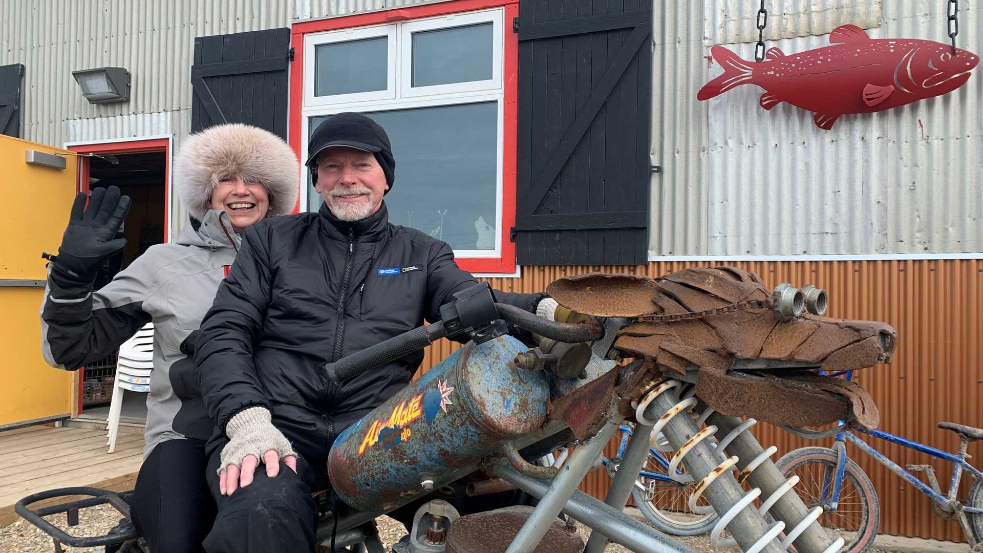 Today aboard National Geographic Resolution, we stopped in the vibrant community of Cambridge Bay. Here guests were able to tour the Canadian High Arctic Research Station (CHAR), the local community, and the Red Fish Art Studio. Red Fish is a community studio that teaches welding to youth and adults through the creation of art pieces that are repurposed and upcycled from metal scrap.
