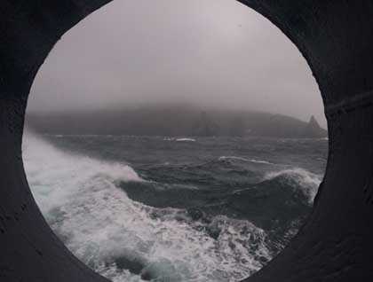In the early hours of the morning we slipped out of the protection of the Beagle Channel and made our way south to this infamous location off the southern tip of South America. Circumnavigating the island, named by a Dutch captain after his hometown in The Netherlands, we had good views of the Albatross Memorial (honoring the maritime dead) and the lighthouse. By mid-morning a window of opportunity for a landing had presented itself and we were able to land some 130 guests in an exemplary Zodiac operation of the kind for which National Geographic Explorer is celebrated. The lighthouse keeper and his family hosted us graciously and we braved the strong winds atop the island to visit the Albatross Memorial and that to Captain Robert Fitzroy who had preceded us with a landing here in 1830. It was moment to savor with our purser kept busy ensuring our passports received a commemorative stamp.