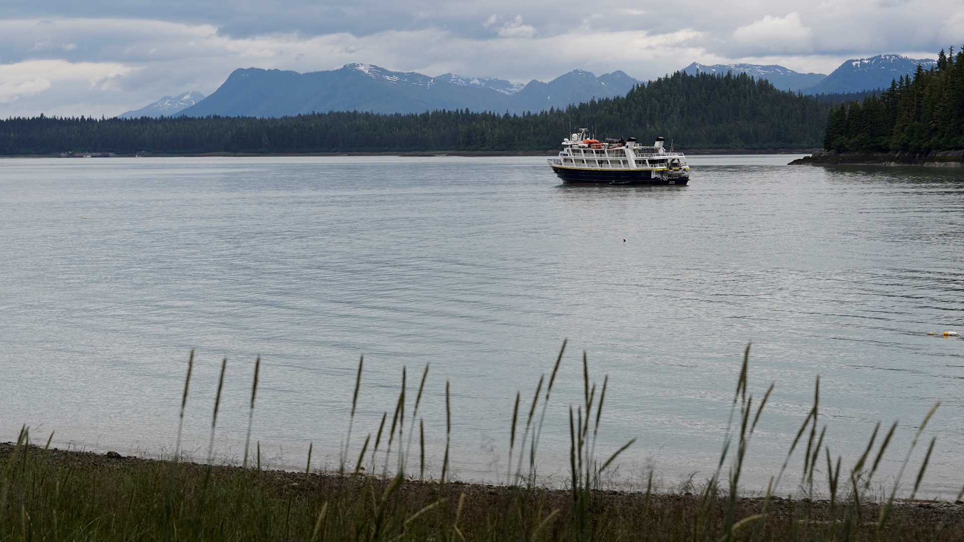Today we made our first expedition landing and visited Cascade Creek. The creek was flowing prodigiously, roaring loudly, and producing a lot of mist. Hikes differed in strenuousness and length, and a couple of groups even did some bushwhacking in the rainforest. The National Geographic Sea Lion then sailed down toward Baird Glacier and Scenic Cove where some of us hiked on the outwash plain in a field of blooming Nookta lupine while others took advantage of the opportunity to kayak and paddleboard.