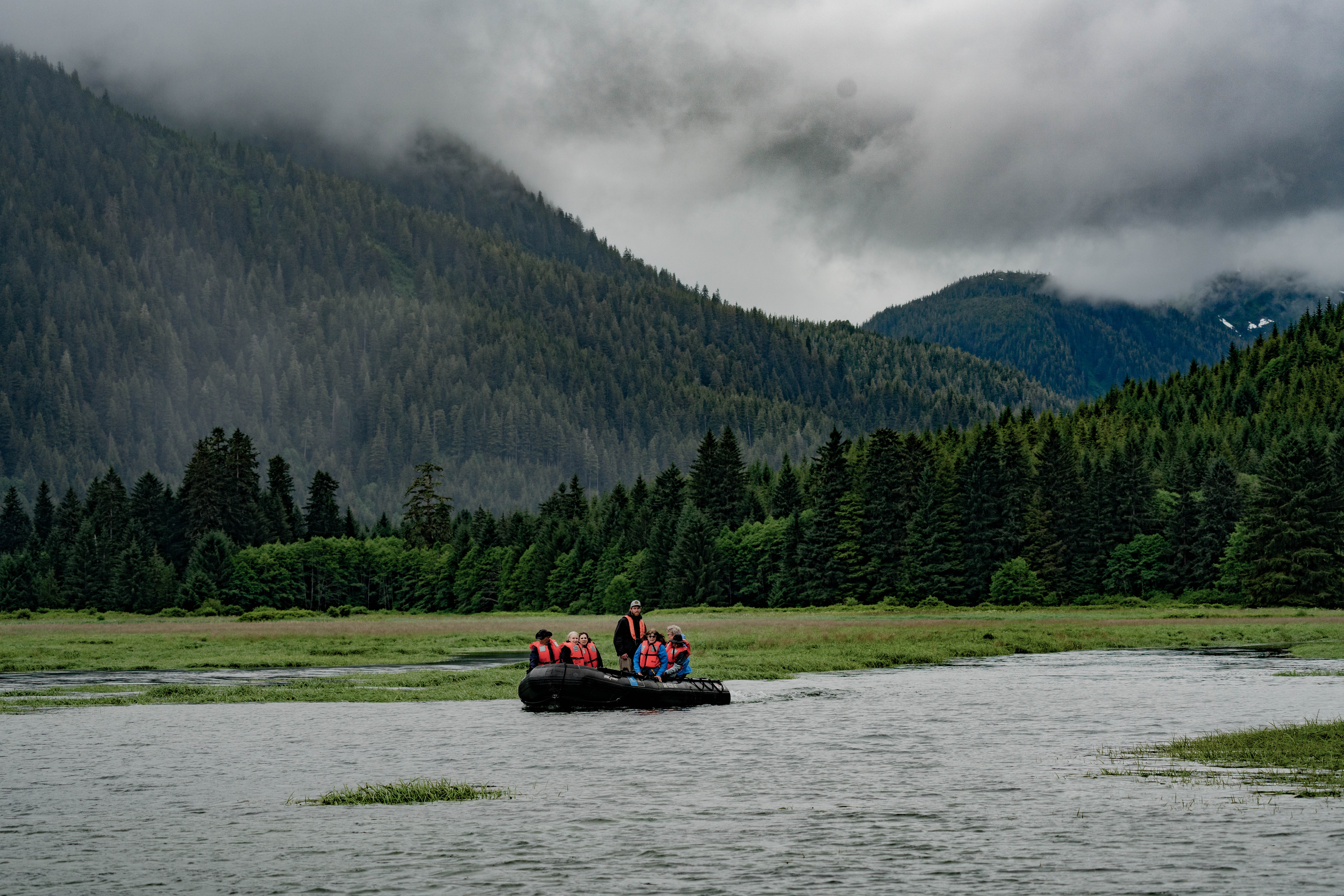 Our final day aboard National Geographic Sea Bird began in Pavlof Harbor. The first coastal brown bear we sighted was a lone juvenile resting at the mouth of the stream, nestled amongst the rocks. We slowly headed to the falls to find a burly adult stalking salmon in the middle of the stream. As the season winds down, these bears are over double their spring weight. While they have been foraging all spring and summer on sages, grasses, berries, and more, the true calorie loading comes from their end of summer salmon feast. Every few minutes, this adult caught yet another salmon, only to gorge on the brains, eggs, and skin. The remaining bits are too muscly for the bears. Strolling along the edge of the stream after its nap, the juvenile joined in the salmon feast. While the adult patiently stalked its next salmon, the juvenile was less patient, often losing focus and staring around. It even appeared to avoid getting too wet by sitting, frog style, on a middle rock. A few minutes into our second round of bear sightings, we observed as a mother and two cubs approached! One quick swipe in the water, and this momma bear caught her first female salmon. She took a clean bite of the tail end, and out poured fresh salmon roe. The two cubs pushed in for a share of mom’s catch, each taking a chunk of the skin for themselves as well. While mom was willing to share, it seemed like one of the cubs was quite talented in the art of fishing. After a few tries, this new cub had already caught its first salmon. With a look to the right, the juvenile was still sitting above the rock, maybe afraid to intervene, or perhaps less of a hunter. Either way, the bear sat, still looking around and waiting for an easy target. We began this week with glacier carved fjords, stunning and close views of glaciers, and moments with marine mammals. We completed our journey at the stream along with the salmon. They come here to spawn and die, and their nutrients are recycled into the forest and animals around us. With such documentary worthy moments captured in our memories and in our photos, we headed back to the ship with an overwhelming sense of awe. I know that you are probably thinking nothing could make this day any better. Alas, this is Lindblad, and during the afternoon, we cruised the area in search of humpback whales. A few hours into our search, we found a relatively fast group of bubble-net feeding whales. With their surface feeding visible from the bow, naturalists and guests alike were shouting for joy. Later in the evening, we identified four of the six whales we sighted, learning that most of them have been sighted migrating to Hawaii for the winter. The evening closed with one final recap, our guest slide show, and conversations into the twilight. I could not think of a better send off from our time here in Southeast Alaska. Until next time! Photo caption: Visiting Pavlof Harbor and Chatham Strait.