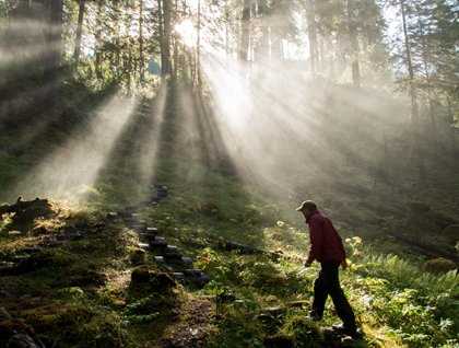 Morning operations took place at Cascade Creek, where frothy white water tumbled down a steep mountainside. Everyone hiked to the base of the falls, where we enjoyed glorious sunlight streaming through flying spray. Moderate hikers discovered the incredibly toxic rough-skinned newt and admired its flaming orange belly. Strenuous walkers plodded uphill, boots sucked off by deep mud as they crawled over and under logs.
