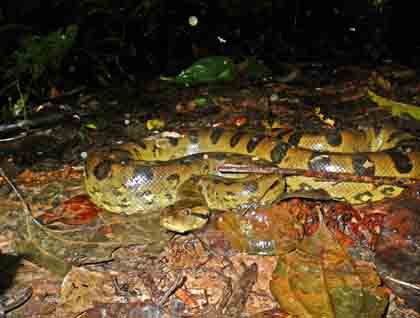 Shortly after breakfast the rain started, but it was not an impediment for us to continue with our goal, which was the visit to Casual, a terra-firma trail full of wildlife. As we walked on a nice forest path, local guides disappeared in the forest only to re-appear minutes later with some wildlife that would have been impossible for us to find on our own. This is one of the special things about this area, as the locals are so eager to find and to share their daily lives with us.