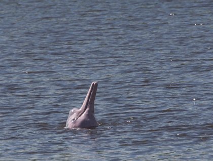 Upon returning to the ship, I gave a talk giving an overview of the Amazon. During it we sailed up the Maranon until we reached a side tributary, the Yanayacu River. Where this black-water river merges with the white-water Maranon, it stirs up a lot of nutrients for the fish and is therefore a good place to watch the pink and gray dolphins swimming around feeding. All during lunch we were treated to a wonderful show by both species of dolphins. The climax was viewing the mating of a pair of pink river dolphins which I had never gotten to see before. It was incredible to watch these dolphins roll around together, lounge on their backs at the water’s surface and exhibit other unusual behaviors. What a gift to get to observe all this!