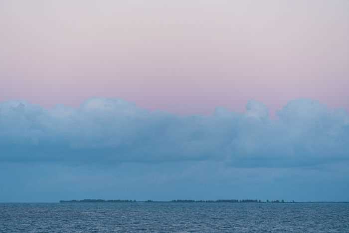 The day dawned a soft pink and blue with cumulus clouds before the sun rose. We were anchored in the bay near Cayo Largo in beautiful turquoise waters. After breakfast we departed for shore to visit an international medical clinic and listened to the doctor talk about how they provide treatment to international people staying on the island. We visited a sea turtle conservation clinic, where the director talked about their program to save the eggs and baby turtles to help increase the levels of green and leatherback turtles in the ocean. Tourists on the island help him gather the eggs after they’ve been laid in the sand, move them to a safer spot until they hatch, and then volunteers help them get to the sea safely when they hatch. Our group then split up and some went to a beautiful white sand beach to explore while others snorkeled. Ruddy turnstones scurried about on the beach looking for food, and the wind rippled through the thatch umbrellas and the palm trees under a hot sun. We gathered back together to go for a barbecue lunch on the ship before setting sail for Cienfuegos. Tonight was a full moon rising over a calm sea.
