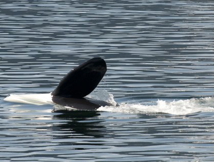 Naturalists spoke about various aspects of these fascinating creatures. Sometimes called “wolves of the sea,” in many ways they really are more like humans. Regularly, Dall’s porpoises came by. These speedy creatures often snatch a breath at high speed, producing a rooster-tail of spray. Fast though they may be, Dall’s porpoises fall prey to killer whales, and the fact that these animals readily swam near the whales indicated that they too were confident of our whales’ piscivory.