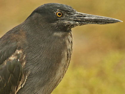 This week we have been blessed with great weather: sunny days and no rain at all. Today was no exception. We started our day with a radiant sun, and then breakfast boosted our energy and left us ready to explore the islands. Today we are on Chinese Hat, a nice islet south-west of Santiago, with an amazing turquoise water channel in between. Our first outing after breakfast was a Zodiac ride along the dramatic coast; we found sea birds, iguanas and a beautiful juvenile penguin swimming alone. Some of us watched a great blue heron dart and grab, then swallow, several red cardinal fish. A much smaller striated heron stalked silently after Sally-light foot crabs. Several penguins zipped past us in the water, in a hurry as they chased tiny schooling fish.