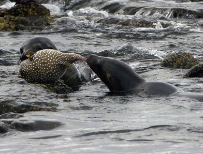 We started our day of exploration with an early Zodiac ride along the coast of Chinese Hat Islet and Santiago Island. The morning was very calm and as we looked at the different volcanic formations we got to see a lonely Yellow-crowned night heron looking for food along the cliffs. The Galapagos sea lions were also seen resting on the rocks and under some bushes. An exciting moment was to find a Stripe belly puffer fish being taken by a couple of playful juvenile Galapagos sea lions as a toy to play with. By the looks of it the sea lions had more fun than the puffer fish, which by then was tossed around like a balloon. These sea lions gave a very entertaining show.