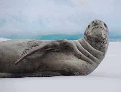 As we steamed into Cierva Cove, large cracks and booms were clearly heard from the glacier located on the southern edge of the bay. Large icebergs carved by nature into fantastic shapes filled the cove enclosed by heavy brash ice. The Zodiacs were deployed and all guests aboard departed for a cruise of the surrounding area. A family pod of three humpback whales (Megaptera novaeangliae) were quickly spotted ‘logging’ or resting on the surface. This behavior is indicative of all the whales and often occurs after intensive feeding on the abundant Antarctic krill (Euphausia superba). An inquisitive leopard seal (Hydrurga leptonyx) was located at the base of a particularly spectacular iceberg and many of the Zodiacs were fortunate enough to view the large seal at close quarters. Gentoo penguins (Pygoscelis papua) were in abundance and many of us visited a chinstrap penguin (Pygoscelis Antarctica) colony located on an island within the cove.