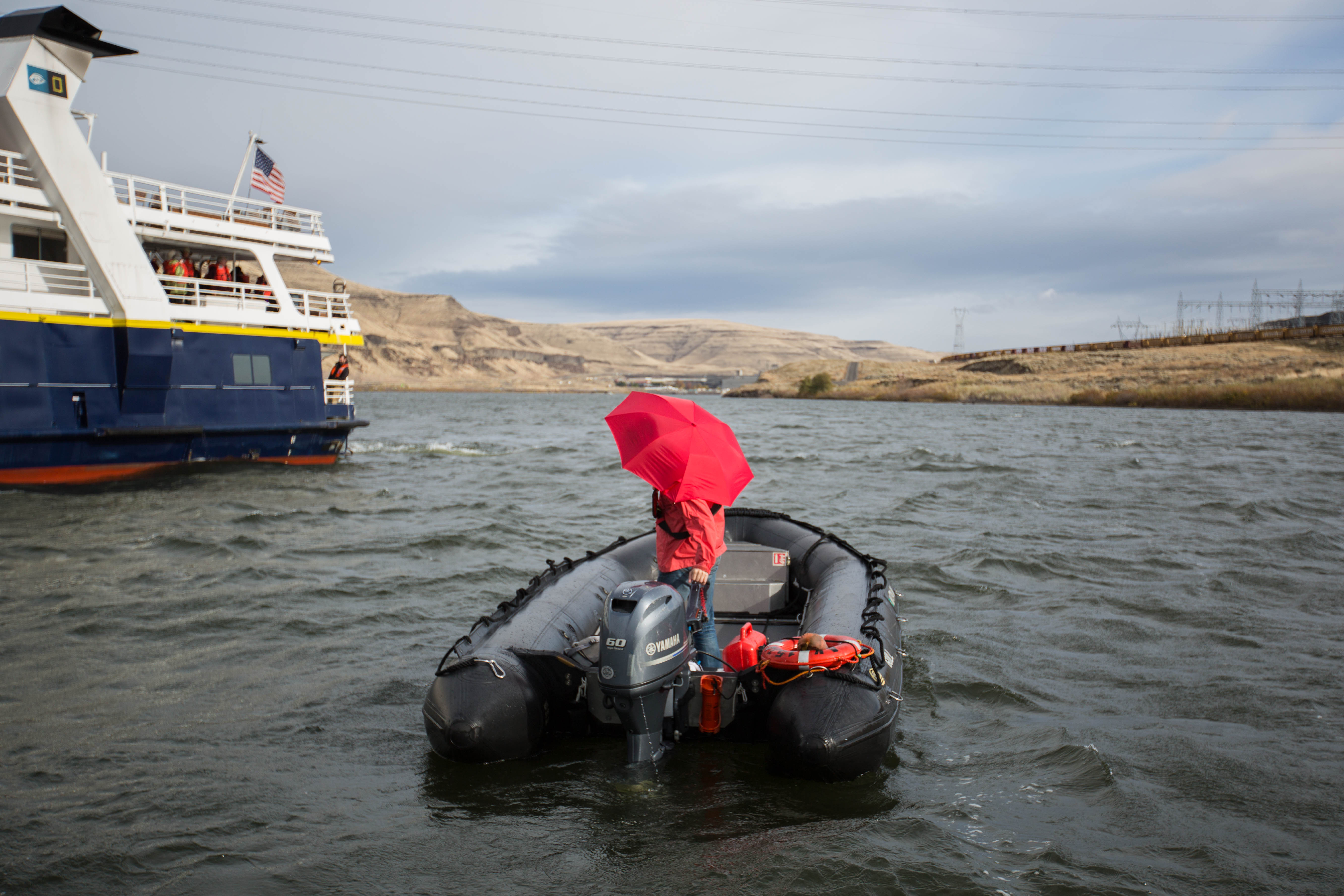 We cruised all morning and turned from the Columbia onto the Snake River somewhere south of Pasco, Washington. Ice Harbor was our first of four Snake River dams. Historian Harry Fritz lectured in the morning on “The Truth About Lewis and Clark, Part III”. He returned the expedition from the Pacific Coast to St. Louis in 35 captivating minutes. Dam authorities allowed us to transit the Lower Monumental Dam (LoMo) in expedition landing crafts. Then it was lunch time, aboard the National Geographic Sea Bird.