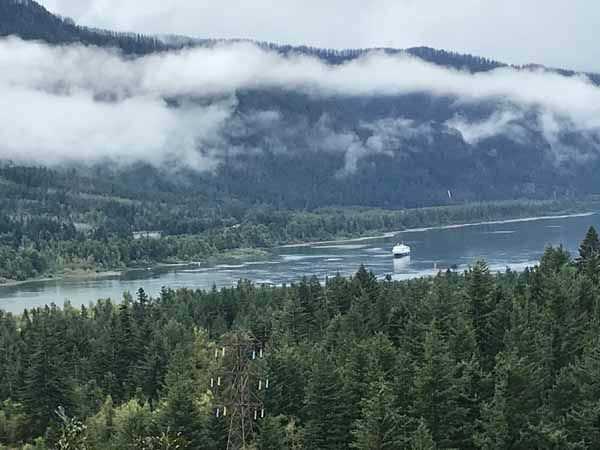 We woke to rain on the Columbia River as we prepared for our day’s excursions. By the time for our operations, it began to clear. Not blue sky, and a few light sprinkles for sure, but none-the-less, the weather was cooperating! Most of our guests headed via coach to the Columbia Gorge Interpretive Center to view the exhibits on the human and natural history of the region. A small but energized group rolled the dice and braved the weather to climb Beacon Rock, an 848-foot tall volcanic neck located along the edge of the Columbia River. With the rain holding back, we climbed the steep trail to the top and were rewarded with spectacular views of the gorge and the river below.