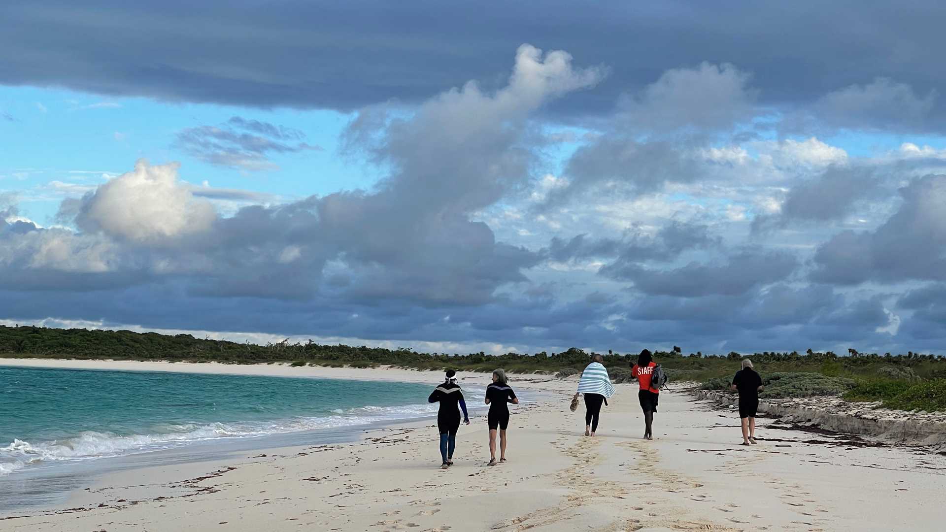 After another calm night at anchor on the Exuma Banks, we awoke to a light breeze and gentle seas. Wind and tide dictate all that we do, showing how intimately tied the Bahamian Islands are to the weather. As the sun broke through the distant cumulus clouds, the waters shone with a full spectrum of blues. Most everywhere we have been on this voyage has been in shallow waters, and we have the delight of seeing the seafloor during our travels. This gives us the privilege of peeking in on the lives of the fish, nurse sharks, coral, and other marine animals that are often obfuscated by more turbid waters. The weather obliging us thus far, it looked like a great day ahead. In the morning, we set out via kayak and Zodiac to explore a cut going through the whole of Shroud Cay. This winding channel drew us in with its beautiful waters, urging us further as its serpentine curves dictated our route. Red mangroves lined the sides as far as the eye could see. Yellow warblers sang from their branches, green sea turtles darted below us, and a lemon shark swam by in the shallow waters. Approaching the windward side of the island, we encountered the “washing machine,” a tidal cut where the channel meets Exuma Sound. Many of us hopped in the water, floating down this strong current before it deposited us safely on a sandbar. It was a delight to experience this natural playground and to cool off after a morning in the sun. In the afternoon, we spent time enjoying the pristine white sandy beaches offered by the Exumas Land and Sea Park. It was pleasant to relax, to take in the scenery and landscape around us, and to get lost in the gorgeous blue waters. Some of us took a walk up the eastside of the island as a few white-tailed tropicbirds circled overhead. These seabirds use small crevices in the limestone to nest, a feature that is plentiful in the Bahamas. From Camp Driftwood, we took in a view of the surrounding cays. We spotted Norman’s Cay, the site of a drug smuggling operation in the 70s and 80s. The DEA monitored the situation from Camp Driftwood. The Bahamas has a rich and diverse cultural history on top of its captivating natural history. We returned to the ship for cocktail hour and dinner, a wonderful end to another incredible day in the Bahamas. We look forward to tomorrow with anticipation, knowing the Bahamas always delivers.