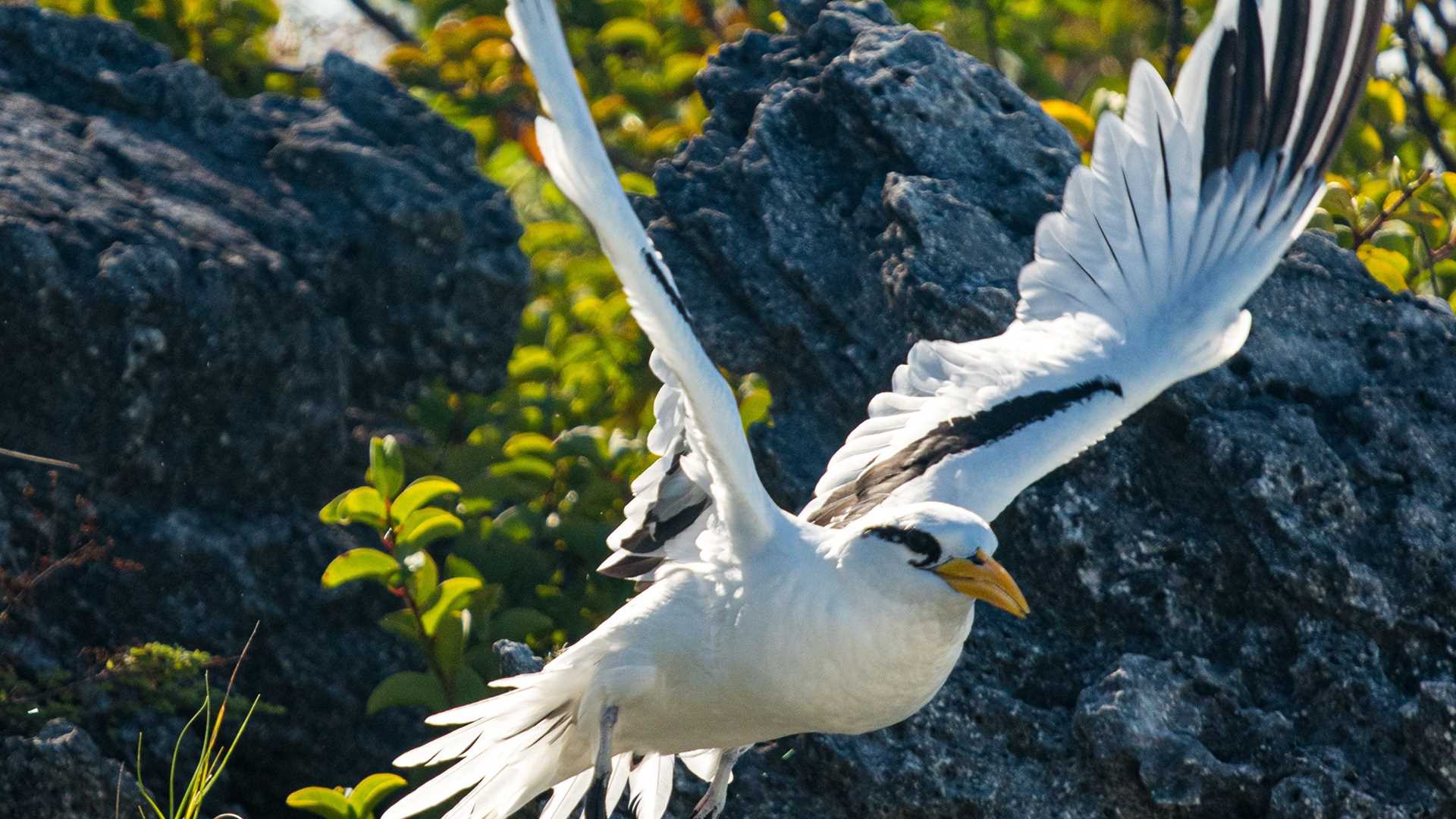 After another calm night at anchor on the Exuma Banks, we awoke to a light breeze and gentle seas. Wind and tide dictate all that we do, showing how intimately tied the Bahamian Islands are to the weather. As the sun broke through the distant cumulus clouds, the waters shone with a full spectrum of blues. Most everywhere we have been on this voyage has been in shallow waters, and we have the delight of seeing the seafloor during our travels. This gives us the privilege of peeking in on the lives of the fish, nurse sharks, coral, and other marine animals that are often obfuscated by more turbid waters. The weather obliging us thus far, it looked like a great day ahead. In the morning, we set out via kayak and Zodiac to explore a cut going through the whole of Shroud Cay. This winding channel drew us in with its beautiful waters, urging us further as its serpentine curves dictated our route. Red mangroves lined the sides as far as the eye could see. Yellow warblers sang from their branches, green sea turtles darted below us, and a lemon shark swam by in the shallow waters. Approaching the windward side of the island, we encountered the “washing machine,” a tidal cut where the channel meets Exuma Sound. Many of us hopped in the water, floating down this strong current before it deposited us safely on a sandbar. It was a delight to experience this natural playground and to cool off after a morning in the sun. In the afternoon, we spent time enjoying the pristine white sandy beaches offered by the Exumas Land and Sea Park. It was pleasant to relax, to take in the scenery and landscape around us, and to get lost in the gorgeous blue waters. Some of us took a walk up the eastside of the island as a few white-tailed tropicbirds circled overhead. These seabirds use small crevices in the limestone to nest, a feature that is plentiful in the Bahamas. From Camp Driftwood, we took in a view of the surrounding cays. We spotted Norman’s Cay, the site of a drug smuggling operation in the 70s and 80s. The DEA monitored the situation from Camp Driftwood. The Bahamas has a rich and diverse cultural history on top of its captivating natural history. We returned to the ship for cocktail hour and dinner, a wonderful end to another incredible day in the Bahamas. We look forward to tomorrow with anticipation, knowing the Bahamas always delivers.