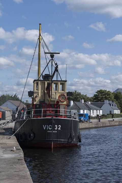 After a tranquil night in the Caledonian Canal at Corpach at the foot of Ben Nevis, Britain’s highest peak, there was no sight of the mountain this morning as the view was hidden behind a veil of cloud and mist. Berthed close to us was the Vic 32, built in 1943, a rare survivor of a Clyde Puffer, a coal-powered workhorse that once plied the west coast of Scotland. But soon we were sailing in stately fashion along the canal to Banavie, where first the railway bridge, then the road bridge swung open for us to pass, before we began our ascent of Neptune’s Staircase. This flight of eight locks is one of the most spectacular features of Telford’s Canal, which was completed in 1822, although we were as much a curiosity to the canal-side onlookers as the historic engineering was to us.