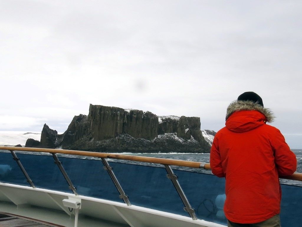 Almost home. Land is in sight as we complete our crossing of the Drake Passage and draw within view of Cape Horn. As sunrise begins to illuminate the clouds, we see the blinking light of the Cabo de Hornos lighthouse. Expedition leader Lucho tells us about the poignant albatross sculpture dedicated to lost mariners and reads us the associated poem in Spanish and English. We are sailing in sheltered waters now, and the sea has reached the balmy temperature of more than 7° C. The seabirds we have learned to recognize in the open ocean–albatrosses, petrels, and prions–are now joined by others, such as imperial shags from Patagonia. Fur seals are once again frolicking near the ship. With formalities complete, there is time for a last series of presentations from our expedition staff, including: a lively account of the world-defining voyage of Ferdinand Magellan by naturalist Madalena Patacho, intriguing ‘Behind the Scenes’ insights into the life of an undersea specialist from Brett Garner, and more about the famous Endurance expedition under the leadership of Sir Ernest Shackleton. After making time for some excellent afternoon Swedish pancakes, we sailed the remaining stretch along the Beagle Channel and came at last to port in Ushuaia. We gathered in the lounge for farewell cocktails with our captain. We celebrated the wonders we experienced over the last ten days, the good friends we traveled with and with whom we shared our discovery of the Antarctic, and the glorious land of Antarctica–the seascapes, history, and wildlife. Where will we travel next? Photo caption: An avian harbinger of the coming day. Photo by Steve Backus