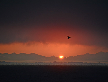 The sun rose through a gap in the cloud layer over the port city of Vancouver, British Columbia as National Geographic Sea Lion cruised south in Georgia Strait. We maneuvered through Active Pass, which was alive with bird activity and harbor seals seeking food in the swirling waters. The sky cleared as we made our way among the Gulf Islands and then crossed the international border between Canada and the United States.