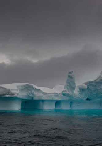 Those of us who take to the water as our viewing platform are no less rewarded by the beauty we encounter in the form of artfully sculpted icebergs. Deep blue curves, skillfully chiseled shapes, and weather worn surfaces leave all of us in awe. Penguins leap into the air around us as we negotiate through the huge pieces of ice. On one small rock islet, three Weddell seals bask in the sun that one minute is shining, and the next covered over by clouds. All of it leaving us wanting more, a good thing, we have an exciting afternoon ahead of us.