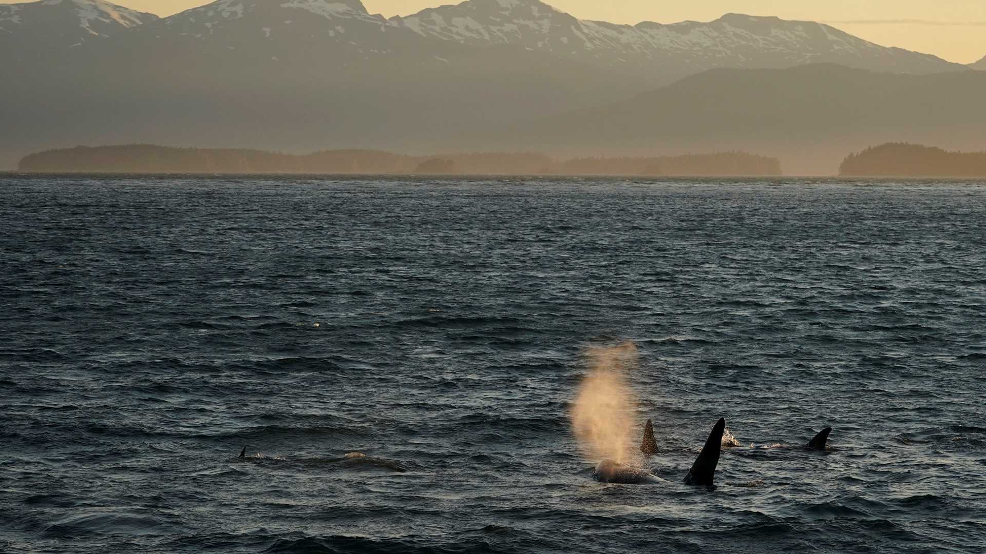 On the first full day of our expedition aboard National Geographic Sea Lion we entered Endicott Arm early and sailed toward our destination, Dawes Glacier. It was an uncharacteristically warm and beautiful blue-sky day in southeast Alaska. The fjord was littered with ice sculptures that had calved from the glacier and were melting in the water. Huge icebergs were evidence that there had been several large calving events in the recent past. A visit to the tidewater glacier in our Zodiacs was an exciting and new experience for most. After the visit we sailed back down the fjord to Stephens Passage and were treated to an exuberant humpback that breached. Continuing south, we were in Frederick Sound when we ended our day with a great encounter with a pod of killer whales.