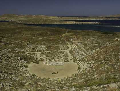 We started our exploration by walking through the sacred area, the many Agoras, the sacred lake and after a short stop at the museum we headed towards the Theater and the residential area. In the small but outstanding museum we had a chance to admire the original “Naxian Lions” that guarded the lake for thousands of years and some of the authentic mosaic floors that have been detached from the impressive 4th century B.C. Hellenistic Houses. It seems that the wealthiest merchant seamen and bankers invested in a mansion on Delos! The ancient glory and prosperity of the island is obvious with every step we make.