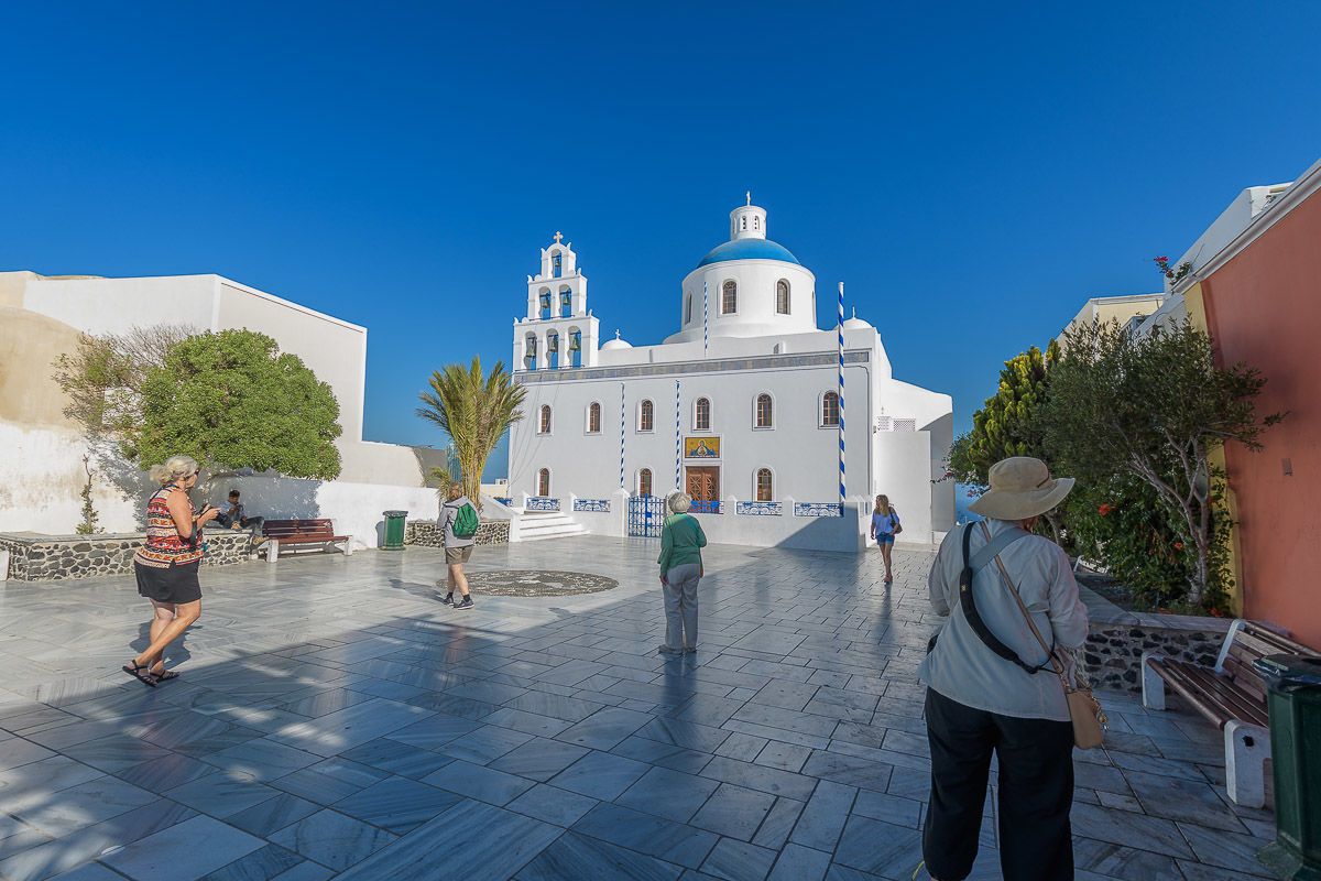 Our first stop today was at the sacred island of Delos, the birthplace of the twin gods Artemis and Apollo. We began our tour in the Hellenistic-era residential district, near the ancient theater. Scattered remains, like an occasional olive press or a fishmonger’s stone table, hint at the thriving commerce that once existed on the island. This commerce resulted in wealthy merchants, whose private residences—some of the best preserved in the ancient world—were decorated with stunning mosaics and frescoed walls. We then proceeded to the Archaic-era sacred precinct, which included the fragments of the colossal kouros, meaning “sculpture of a youth”, dedicated by the Naxians. Although we could easily have spent all day exploring this fascinating archaeological island, increasing winds meant we had to return to ship before lunch. We spent a relaxing afternoon aboard Sea Cloud with photo instructor José Calvo providing an engaging discussion on photographic composition. His tips proved quite useful at our next stop, the vibrant island of Naxos. This island, unlike the other rather barren islands of the Cyclades, is famed for its agriculture, with wheat, barley, and potatoes growing on the island’s fertile plains. We walked through the Venetian Kastro (meaning “castle”) which was the capital of the Duchy of the Archipelago after the Fourth Crusade. Eleni and Kriton guided us through narrow, winding alleys, with periodic gateways surmounted by the marble coats of arms belonging to the Latin nobility. Thanks to centuries of Latin rule, Catholic churches can still be found on Naxos. After our tour some of us walked to the 6th-century B.C. marble gateway that is now the symbol of Naxos, and enjoyed another spectacular Aegean sunset.