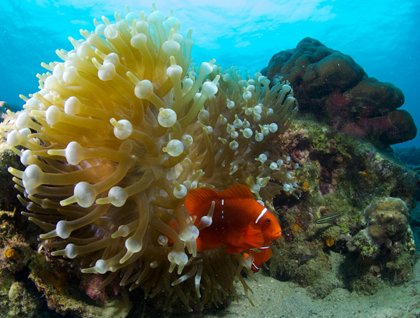After breakfast everyone goes their preferred way: snorkeling, glass-bottom boating, and diving. I go diving and it is beautiful: lots of color, lots of fish, lots of fun. Being as this place can have a strong current, there are many current feeders about like feather stars, strange relatives of sea stars, and sea urchins know as crinoids to fossil collectors.