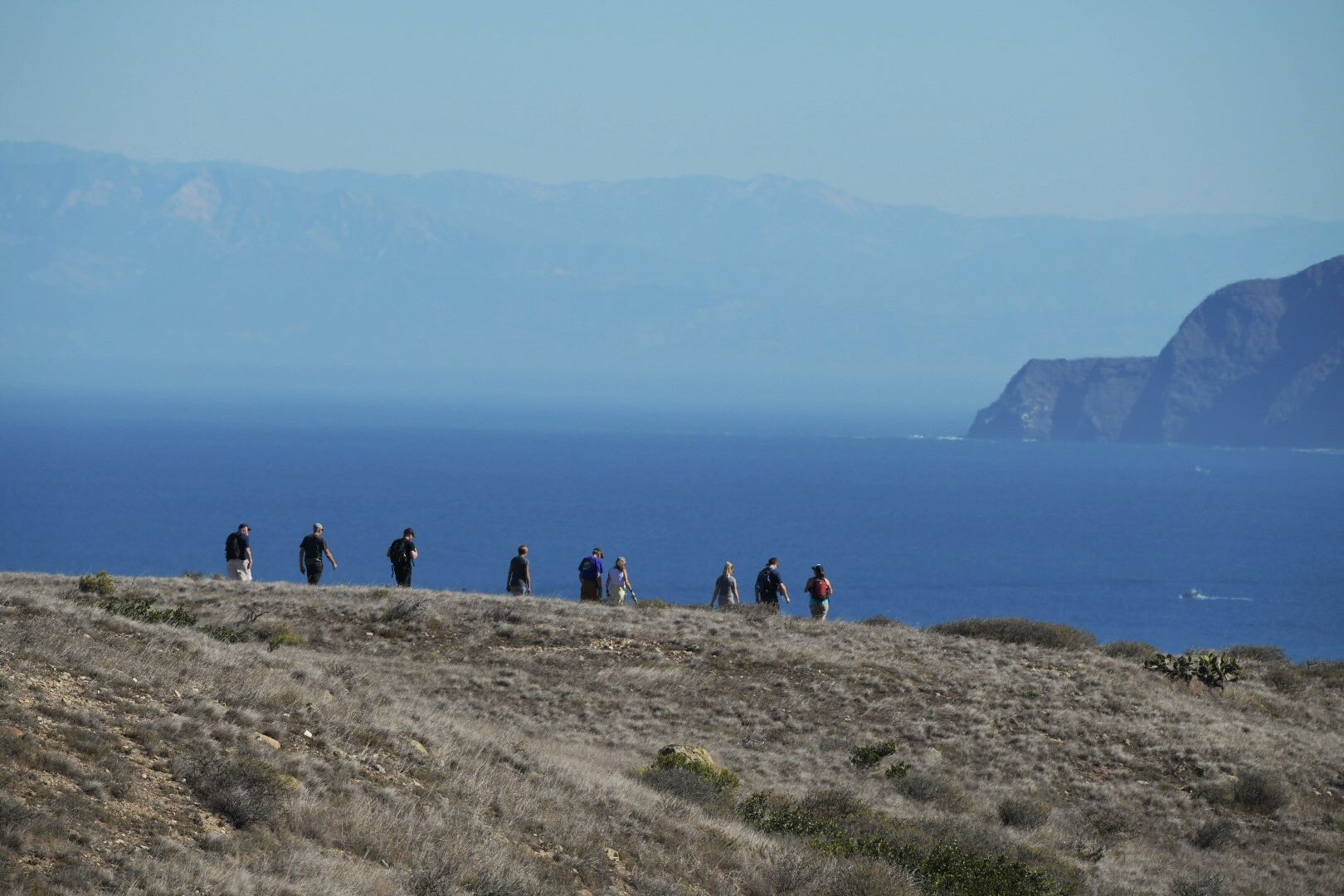 After days of sunshine and warm temperatures, the “raincoast” delivered some authentic fall weather today. The day started with a thick fog as we cruised into Friday Harbor and cleared Customs. By the time we reached Lime Kiln Lighthouse on the west side of San Juan Island, the fog had lifted, giving us picturesque views of the Strait of Juan de Fuca with Vancouver Island silhouetted along the horizon. We were able to tour the gorgeous lighthouse that, in addition to still being operational, serves as an interpretive spot for the southern resident orca whales that frequent the area. In recent years, this unique population of whales has shrunk to 73 individuals due to a variety of reasons, especially decreased salmon populations. In the evening, two members of the Center for Whale Research came aboard to discuss their most recent findings and what must be done to ensure that these intelligent and charismatic animals continue to populate these waters for generations. The San Juan Islands are also home to a little-known piece of U.S./U.K. history. Known as the Pig War, a nonviolent confrontation over the border took place between the two countries. It was settled after much dispute. For twelve years, American and British camps occupied opposite sides of the island until an arbitrator ruled in favor of the Americans, and the border was drawn in Haro Strait, west of San Juan Island. The sites of the two camps are now national parks, and the eerie fog that drifted up the treeless hills added to the overall environment, reminding us that, despite the dry weather, fall and Halloween are right around the corner.