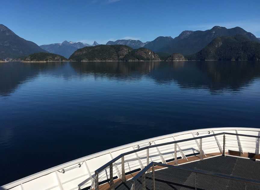 When George Vancouver sailed these waters, he saw the land as remote and forbidding; today with blue skies and calm waters, Desolation Sound’s waters were peaceful and gorgeous. We used Zodiacs, kayaks and stand up paddleboards to explore Prideaux Haven’s countless islets and inlets, and we found oystercatchers, kingfishers, harbor seals, moon jellies, and sea stars. In Tenedos Bay we walked among sword ferns and red cedars to Unwin Lake.