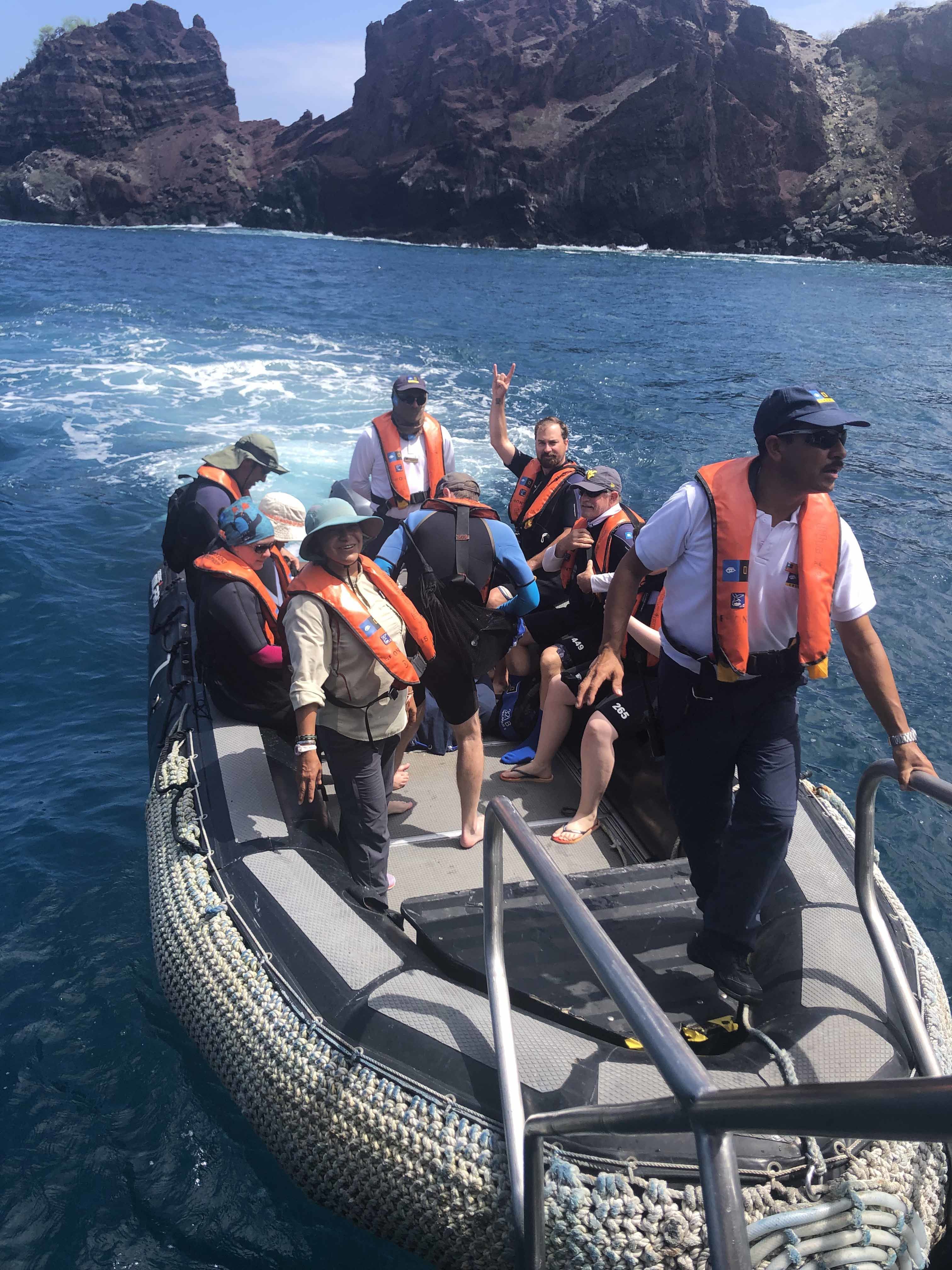 Almost home. Land is in sight as we complete our crossing of the Drake Passage and draw within view of Cape Horn. As sunrise begins to illuminate the clouds, we see the blinking light of the Cabo de Hornos lighthouse. Expedition leader Lucho tells us about the poignant albatross sculpture dedicated to lost mariners and reads us the associated poem in Spanish and English. We are sailing in sheltered waters now, and the sea has reached the balmy temperature of more than 7° C. The seabirds we have learned to recognize in the open ocean–albatrosses, petrels, and prions–are now joined by others, such as imperial shags from Patagonia. Fur seals are once again frolicking near the ship. With formalities complete, there is time for a last series of presentations from our expedition staff, including: a lively account of the world-defining voyage of Ferdinand Magellan by naturalist Madalena Patacho, intriguing ‘Behind the Scenes’ insights into the life of an undersea specialist from Brett Garner, and more about the famous Endurance expedition under the leadership of Sir Ernest Shackleton. After making time for some excellent afternoon Swedish pancakes, we sailed the remaining stretch along the Beagle Channel and came at last to port in Ushuaia. We gathered in the lounge for farewell cocktails with our captain. We celebrated the wonders we experienced over the last ten days, the good friends we traveled with and with whom we shared our discovery of the Antarctic, and the glorious land of Antarctica–the seascapes, history, and wildlife. Where will we travel next? Photo caption: An avian harbinger of the coming day. Photo by Steve Backus