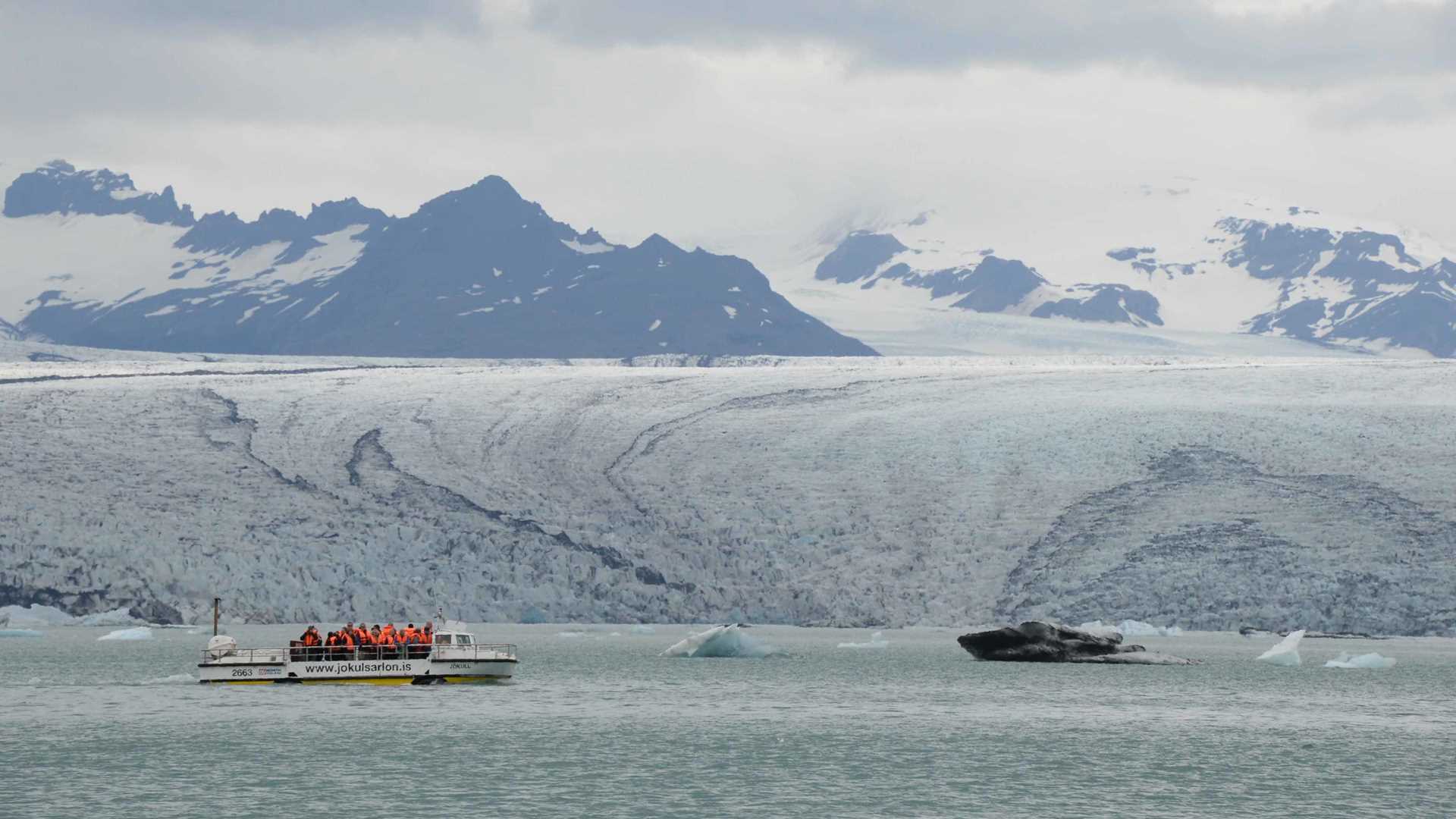 The National Geographic Orion arrived this morning in the protected port city of Djúpivogur, just south of the eastern fjords of Iceland. After an early breakfast, we boarded buses for today’s glacial destinations: the Vatnajökull Ice Cap and Jökulsárlón Lagoon. Along the way, we witnessed outwash plains, bird life, farmland, grazing sheep, glaciers, and great coastal geology.
