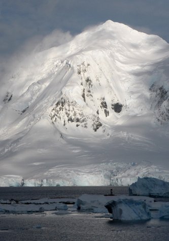 A few hours sail transported us to Arthur Harbor where glaciers calve from every quarter and many small islands hide. Here on a small promontory sits the US Antarctic Program’s smallest base. Its doors were opened to us today. Like inquisitive children, we eagerly accepted the invitation to feed plankton to krill or stare at the modified feet of a sea butterfly. Shopping too was an important activity and families back home should expect to find items labeled Palmer Station in their Christmas stockings. But some of us found that the best thing of all was to sit and enjoy the light filtering through the clouds which created a work of art unparalleled, the ice and the mountains of Antarctica.