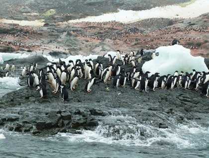 In addition to the hut, an extensive gentoo penguin rookery is found on the rocky headland at Dorian Bay. We were able to walk freely amongst the penguins on hard-packed snow. From up on the old runway we were able to look down on to the old base of Port Lockroy on Goudier Island.