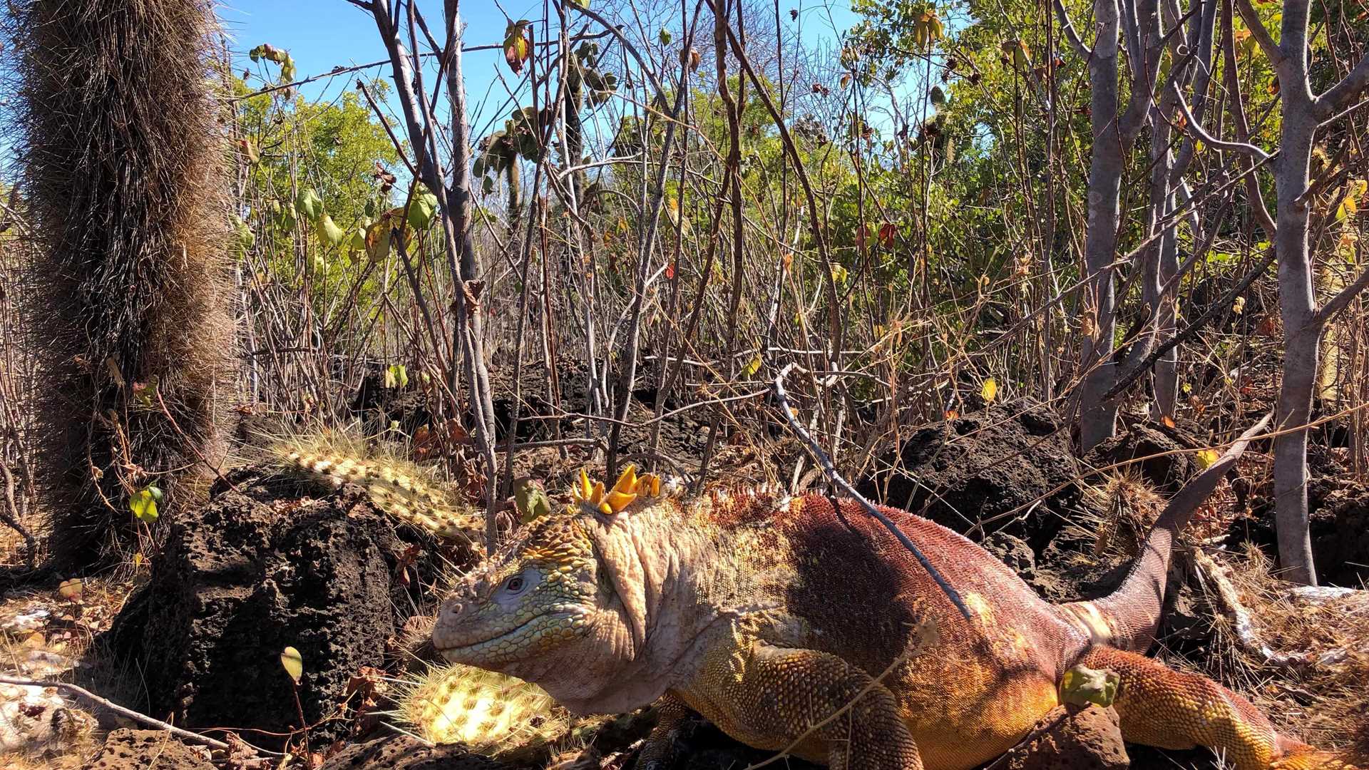 Dragon Hill is a tuff cone, which means compacted and pulverized ash. During our hike in this dramatic landscape we saw lots of endemic and native plants species, plus this place is the home and nesting site of many land iguanas (Conolophus subcristatus). We spotted a few of these individuals and learned about them and their different behaviors. At this moment, it’s not the nesting season, but when the time arrives we are going to find females running away from males, due to their aggressive behavior. A few months later the females will be searching for the best site to build their nest.