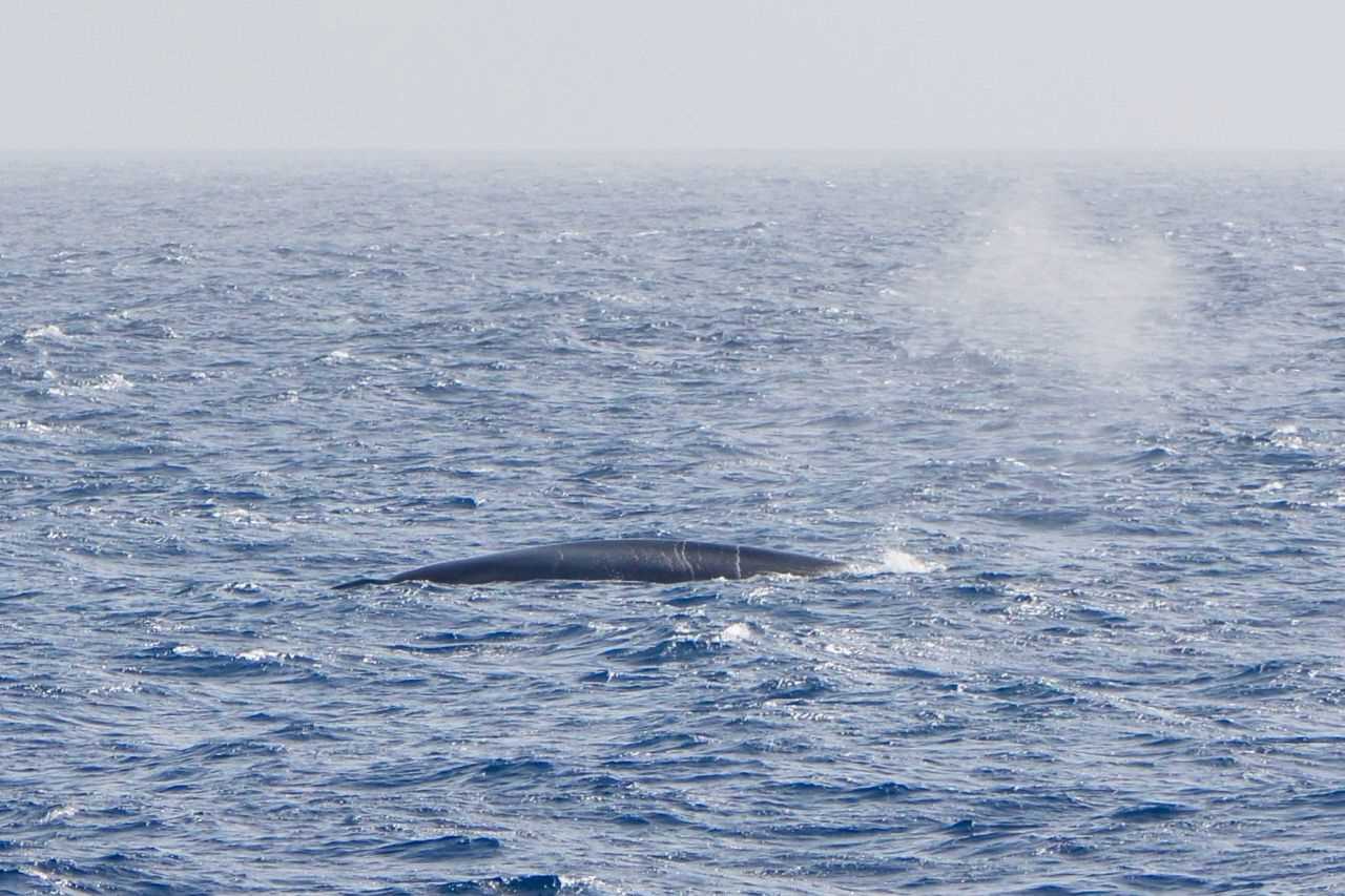 Today was a day for tidying up, finishing up, packing up, and for those caught up, a time of reflection, as well as a time for more learning with several lectures. But we were in for a surprise, as there was an announcement before lunch of a large, lone whale sighting, a blue whale heading north, more or less along our course! There was not really much of a need to slow down, as blue whales are very fast. This whale appeared to be cruising and not feeding and we stayed with it for almost an hour. It would appear on one side of the ship, breathe a few times, disappear for a while, then show up on the other side and do it again. The staff and the captain were quite pleased as we rarely see blue whales here, although they were a common sight before commercial whaling decimated them.