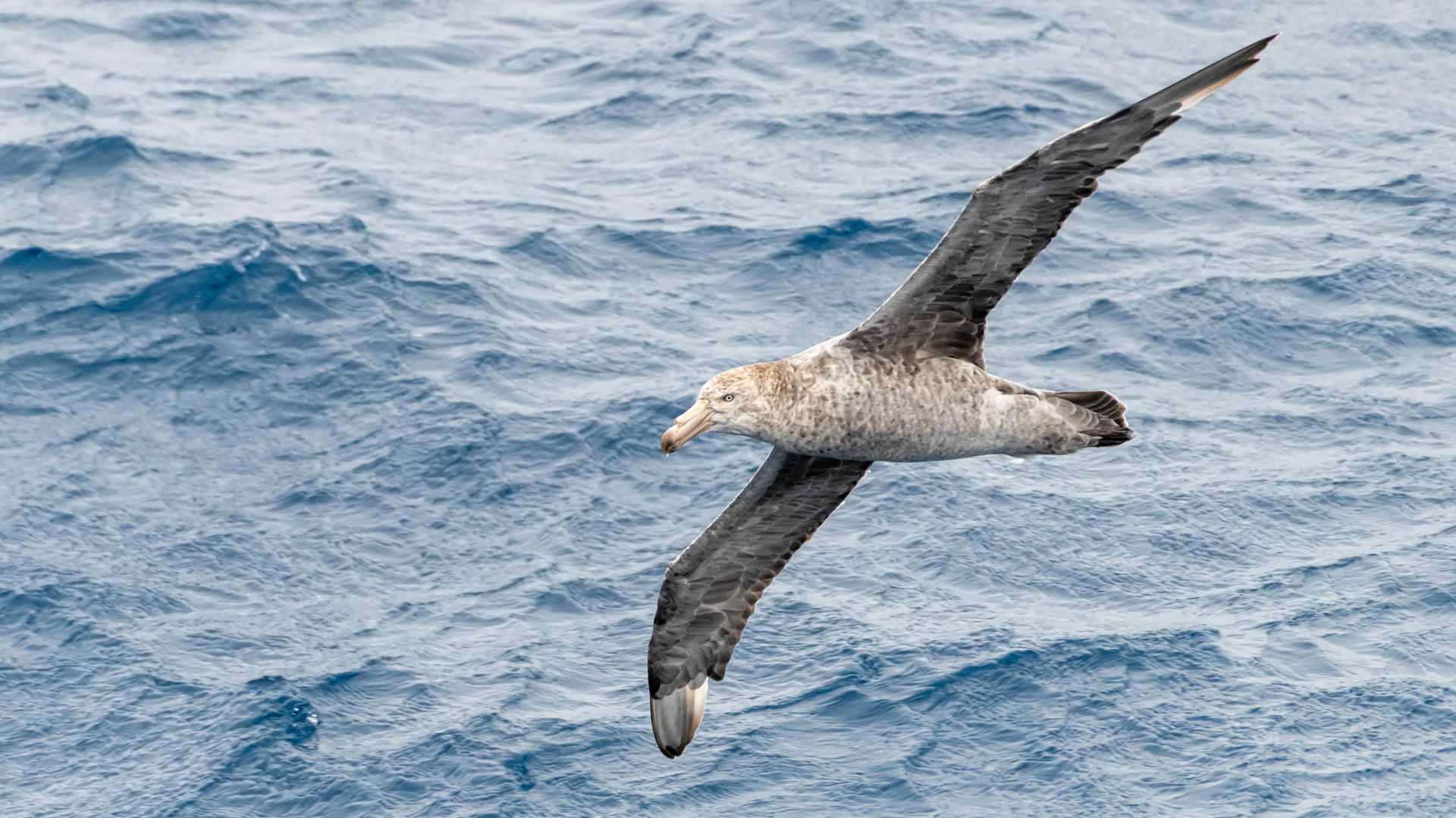 Strong winds made it the perfect day to spot the pelagic seabirds that call the Drake Passage and the Southern Ocean their home. Throughout the day, we watched birds soaring from the aft sundeck and outer decks. It was a great day for albatrosses, with a half dozen southern royal albatrosses following us at various points. We also spotted a juvenile wandering albatross and many black-browed albatrosses. The young wanderer came quite close, providing all on board with spectacular views of its size and agility. Along with albatrosses, we were greeted by many northern giant petrels, several white-chinned petrels, a blue petrel and both Antarctic and slender-billed prions. We even saw an albatross alight to find food. Giant petrels seeking an easy meal also saw this bird and quickly gave chase.