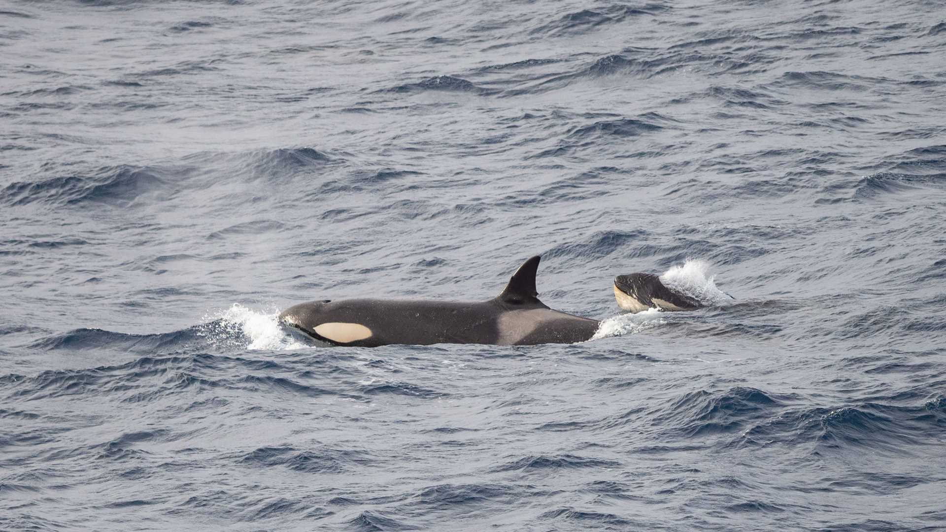 Morning light brought with it a fantastic surprise. Killer whales were sighted early, and an unexpected wakeup call brought everyone out of bed around 6:30. We were treated to nearly an hour of killer whale fun. These were Type A killer whales that specialize in predating on marine mammals. As the dark of night set in, the National Geographic Resolution left the Drake Passage behind and headed into the Beagle Channel. As the ship approached land, we began to see a change in the bird life that surrounded the ship. Large sea birds, like the royal albatross, began to fade away. We began to see more cormorants and land birds. Everyone gazed out the windows, keen to see trees again. It was a wonderful end to a fantastic New Year’s trip!