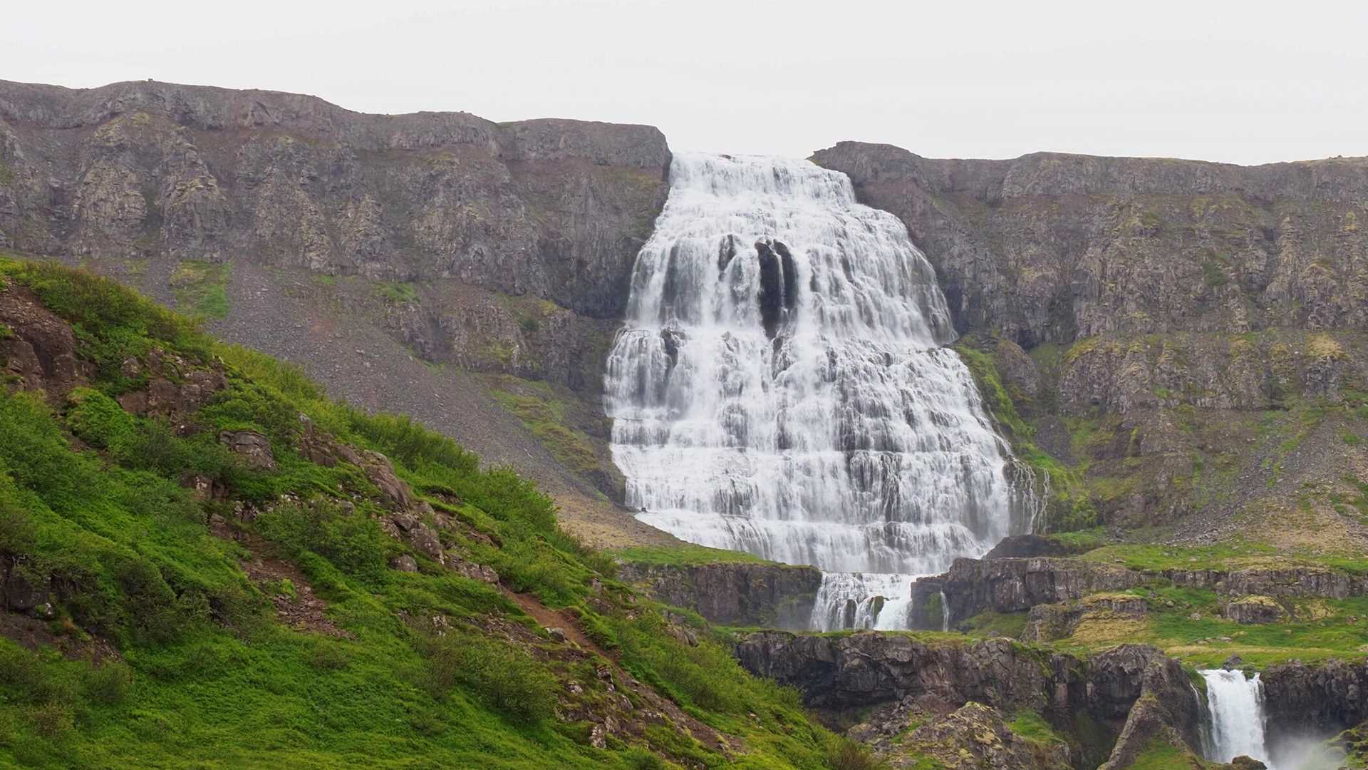 After a wonderful day in Isafjardardjup, we travelled back to the west during the night to visit the spectacular Dynjandi Falls. Our morning was dry with light clouds, perfect for the photographers among us, and we spent it exploring some seven or eight stacked waterfalls known collectively as Dynjandi Falls. While waiting for guests to arrive at the beach, naturalist Tim Martin attempted to capture an image of a dive-bombing arctic tern. Some guests opted for a long hike to the falls. Others travelled by Zodiac to a beach a short distance from the fall’s outlet to the sea, and they climbed a pretty rugged trail toward the top. As expedition leader Mike Jackson put it, everyone was welcome to climb as far as they wished, but no farther! By late morning, we were comfortably back on the ship, cruising to the east once again, and passing a seemingly limitless stack of lava flows. Next stop…Vigur Island.