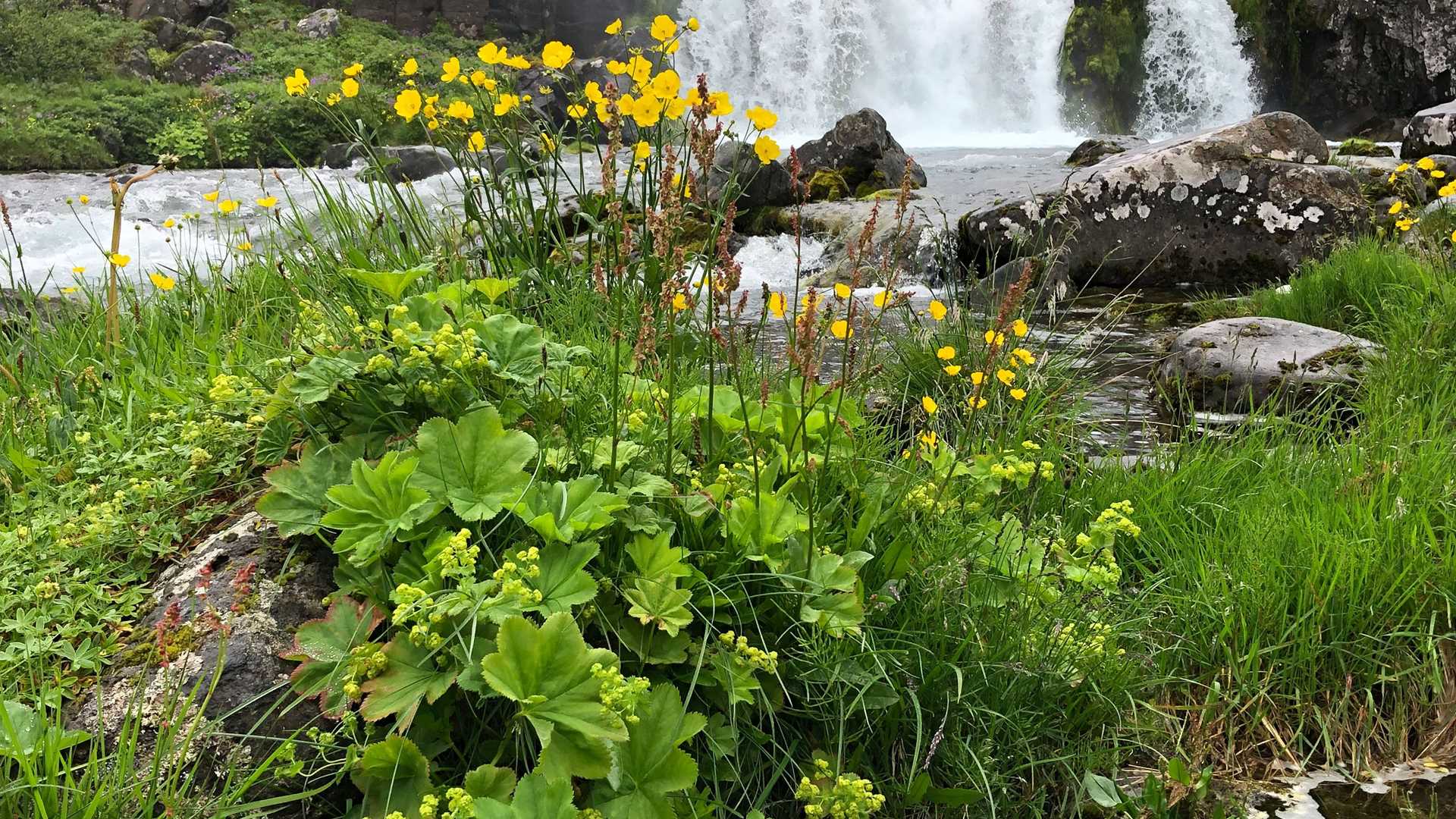 This morning we sailed into the majestic Arnarfjörður, a deep fjord carved by Ice Age glaciers that ground down through the basalt layers below as they flowed seaward. This location is typical of the deeply carved landscape of the Westfjords that are formed of layer after layer of basaltic lava flows that were emplaced 13,0000 to-16,000,000 years ago. Though geologically very young, these are some of the oldest rocks in Iceland. Our goal was soon in sight, splendid Dynjandi, the “thundering” waterfall that is famous in the Westfjords. Dynjandi certainly thunders and roars as it jumps down in stepwise fashion, forming a series of waterfalls over the lava layers that were carved into great steps by the relentless ice.