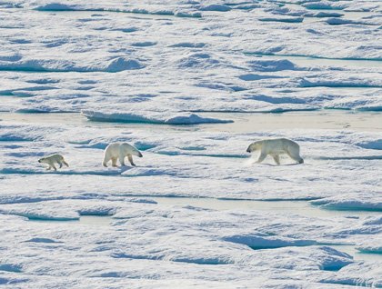 Today would be spent exploring the sea ice that has been ever present this season off the east coast of Baffin Island. Unlike the past few years the ice this year is widespread and thick. It shows that ice trends in Polar Regions also have cycles within them. The sea ice in the Arctic is a major player in the ecosystem. The underside of the ice is a fertile ground for microorganisms to grow during the fall and winter only to be let loose in the spring and summer as the ice melts, releasing huge amounts of material that will feed plankton that in turn will feed invertebrates and then fish which feed seals that become prey of polar bears. The charismatic megafauna that is the polar bear would be our quarry for the day. What we didn’t know at the outset was that the behavior we would witness would show us the power and the drama of this iconic species.