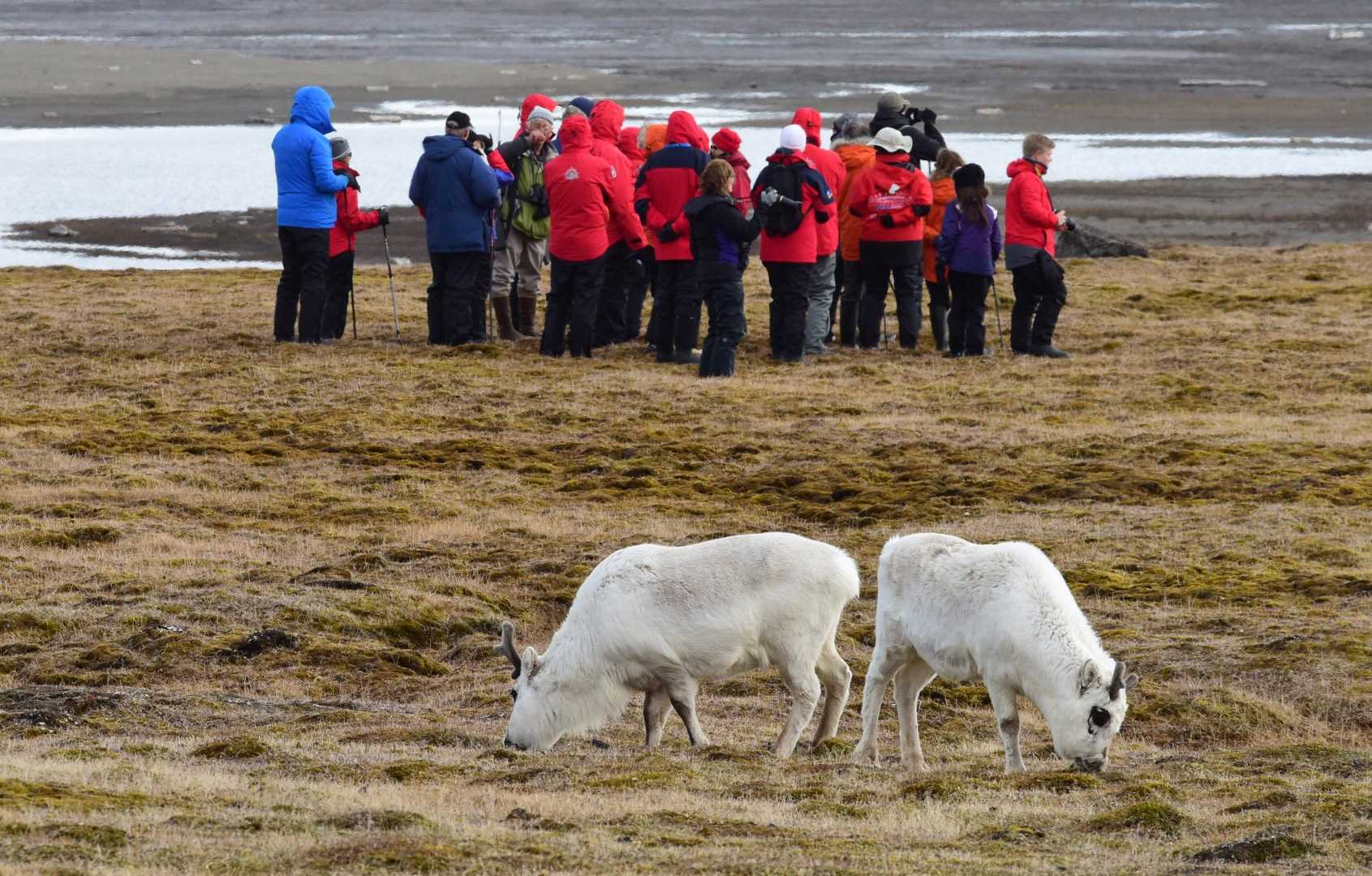 This second day of exploration was a day for wildlife lovers! Just before breakfast we dropped National Geographic Explorer’s anchor off Russebukta (”Russian Bay”), located at the southwestern corner of Edgeøya. At 5,073 square kilometers it is the third largest island in Svalbard. It is to a great extent covered by glaciers, but the northern and western areas are ice-free. The vegetation on this part of Edgeøya is more lush than you will find elsewhere in Eastern Svalbard. The whole island is truly pristine and is protected as a nature reserve.